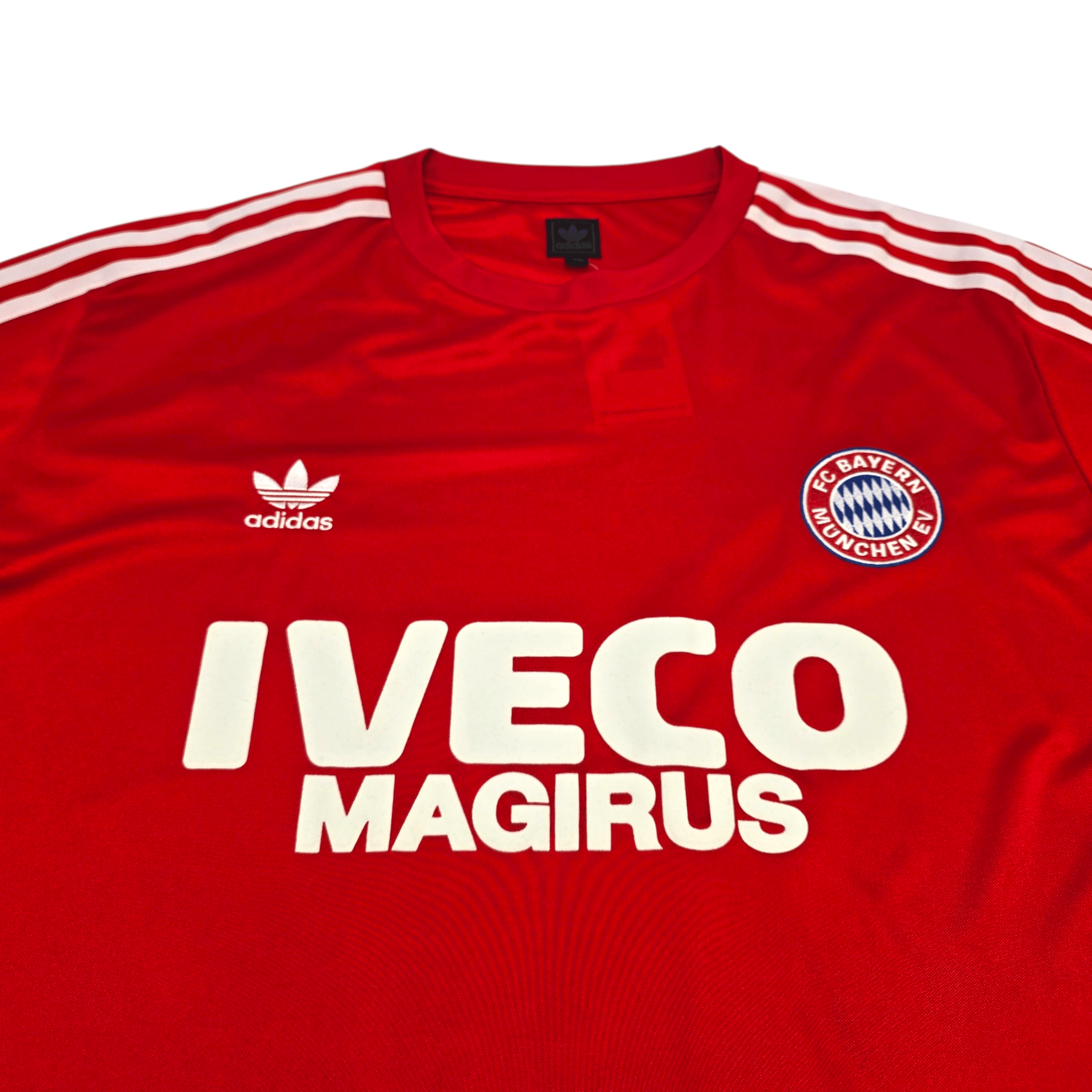 Information: Official Adidas Originals reissue of the Bayern Munich home football shirt, as worn by the ‘Rekordmeister’ during the 1982/83 season, when the side finished fourth in the Bundesliga and reached the DFB-Pokal semi-finals with a squad featuring several key figures of the club’s early-80s era. A fantastic vintage jersey, ideal for a collection of your own or the perfect gift for any football fan.