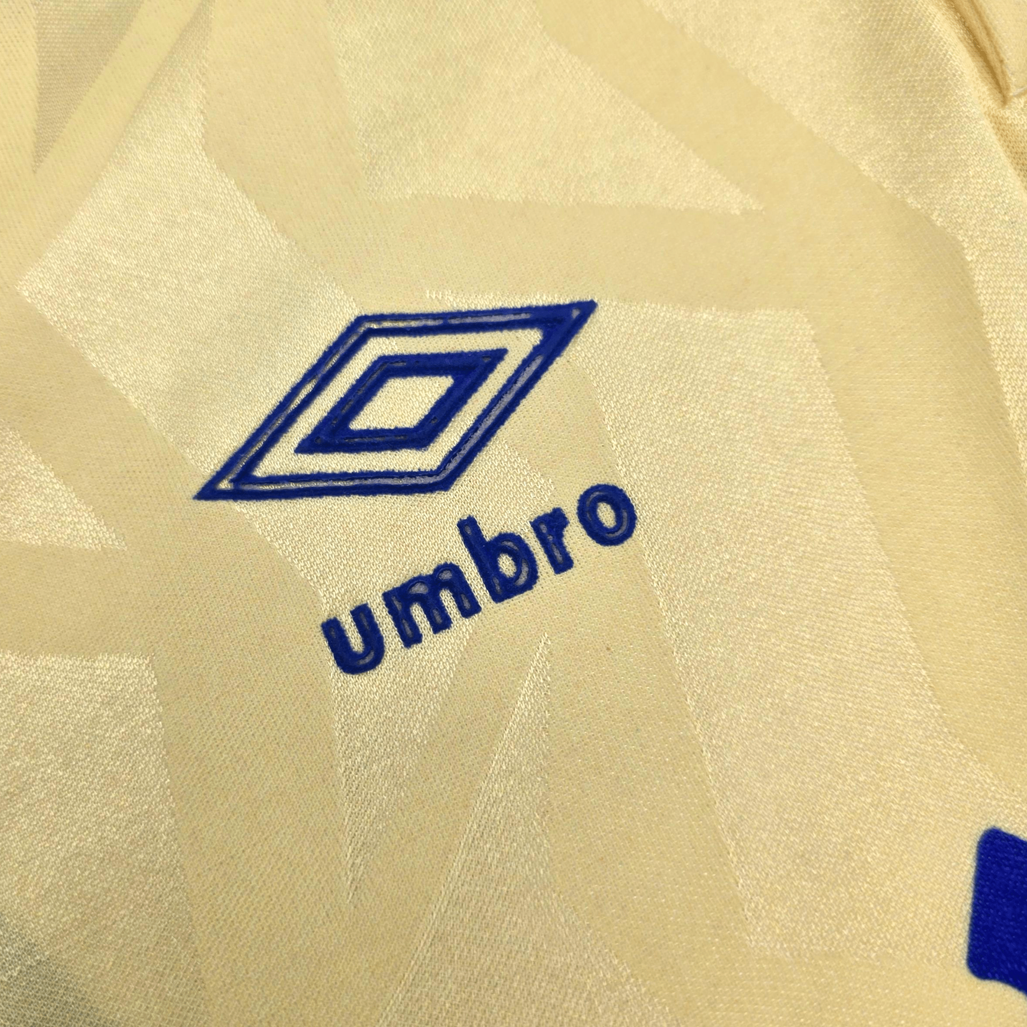 Information: Official Umbro Everton away football shirt, as worn by 'The Toffees' between 1990-1992. A fantastic vintage jersey, ideal for a collection of your own or the perfect gift for any football fan.