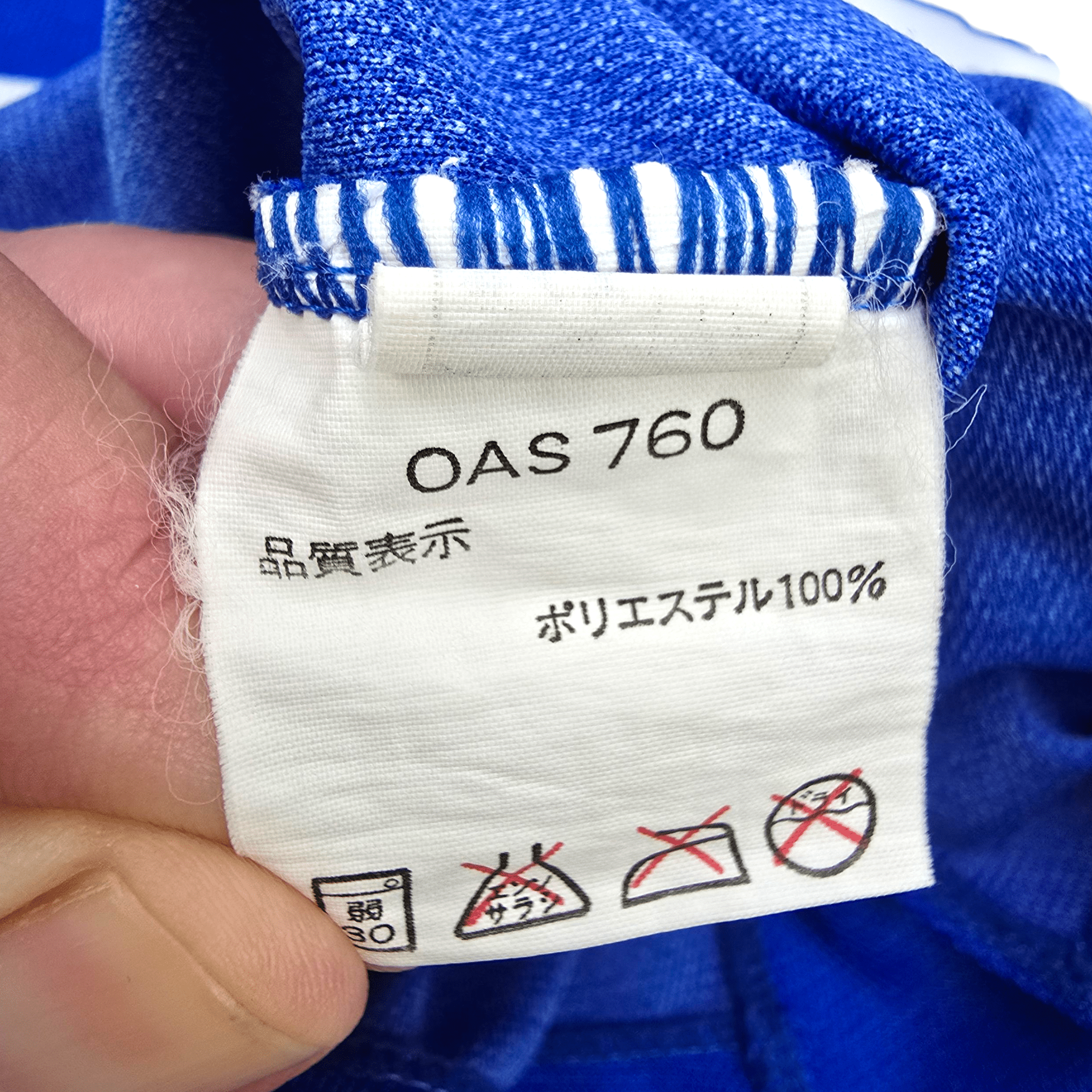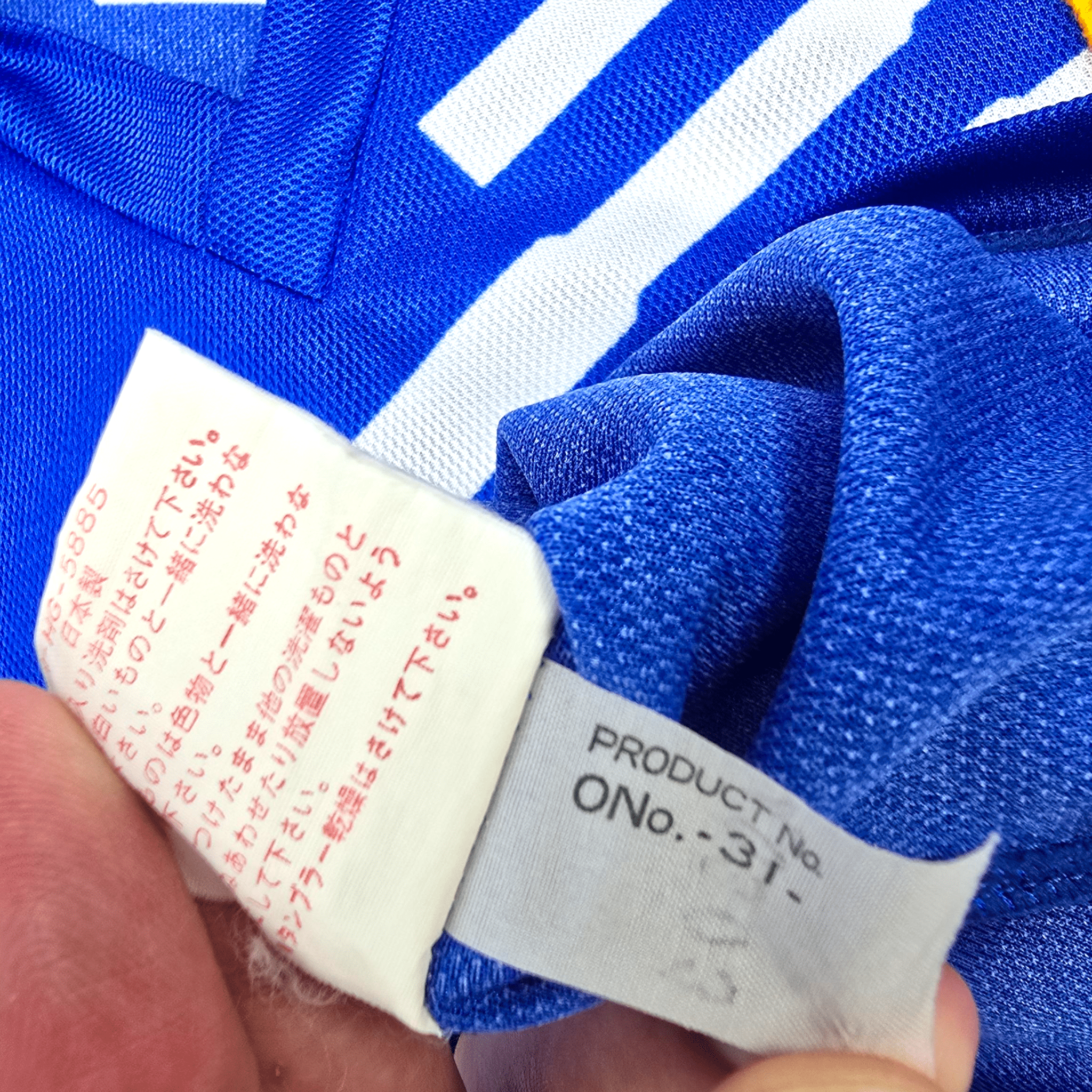 Information: Official Asics Japan home football shirt, as worn by 'Samurai Blue' during the 1994/95 season. Asian market issue, so has internal wash labels for the region. A fantastic vintage jersey, ideal for a collection of your own or the perfect gift for any football fan.