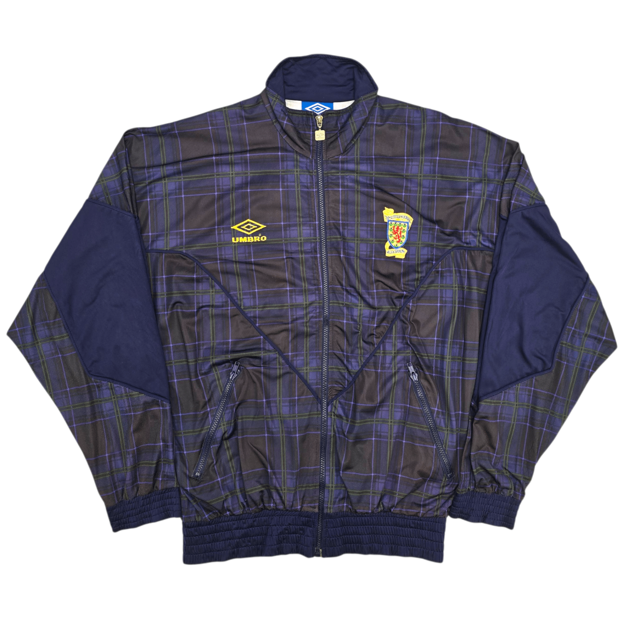 Information: Official Umbro Scotland training jacket, as worn by the ‘Tartan Army’ between 1994-1996, when the side competed at Euro 1996 in England, earning a memorable win over Switzerland and narrowly missing out on the knockout stages. A fantastic vintage jacket, ideal for a collection of your own or the perfect gift for any football fan.