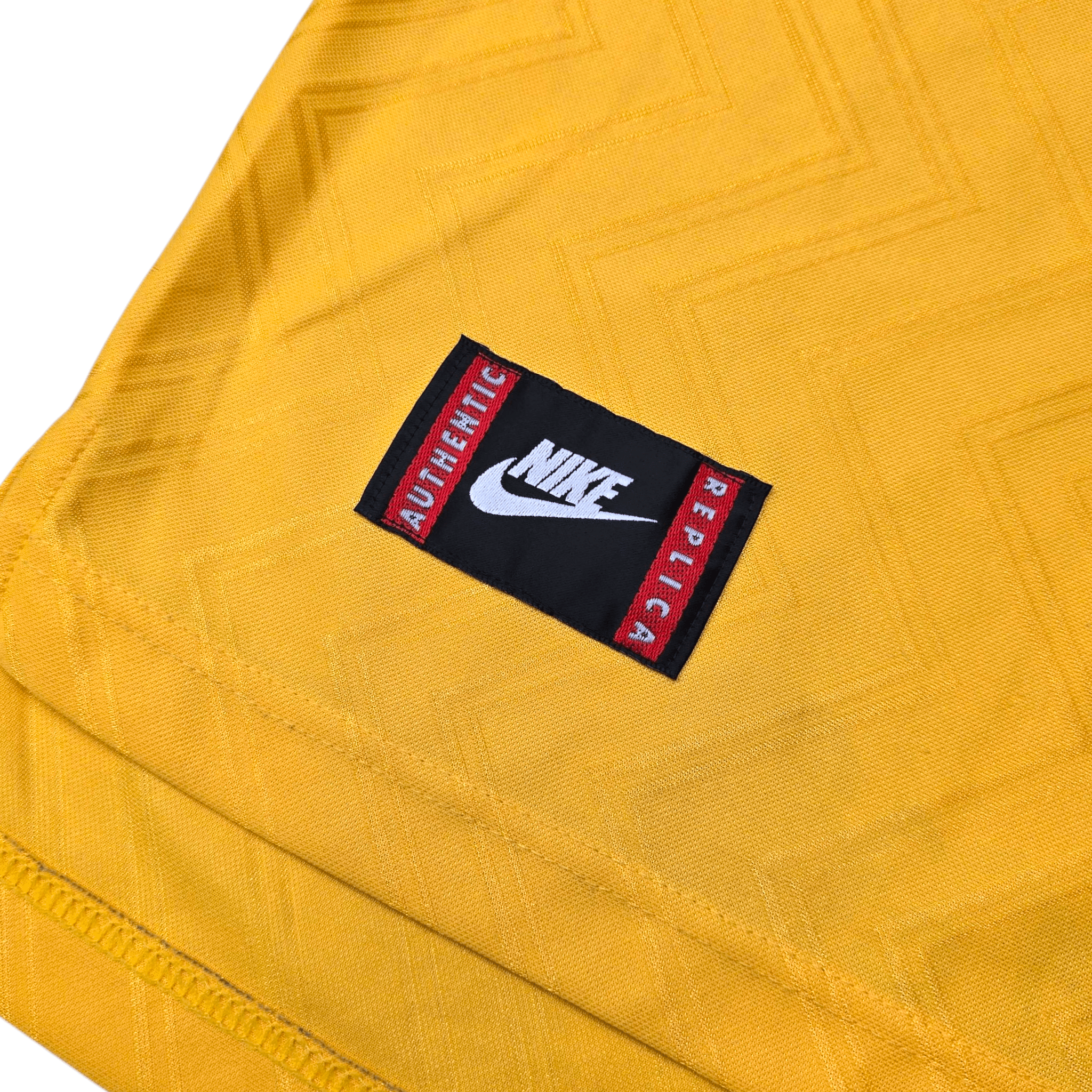 Information: Official Nike Arsenal away football shirt, as worn by 'The Gunners' during the 1996/97 season, when the side finished third in the Premier League. The reverse of the shirt boasts the nameset of club legend, Ian Wright. A fantastic vintage jersey, ideal for a collection of your own or the perfect gift for any football fan.