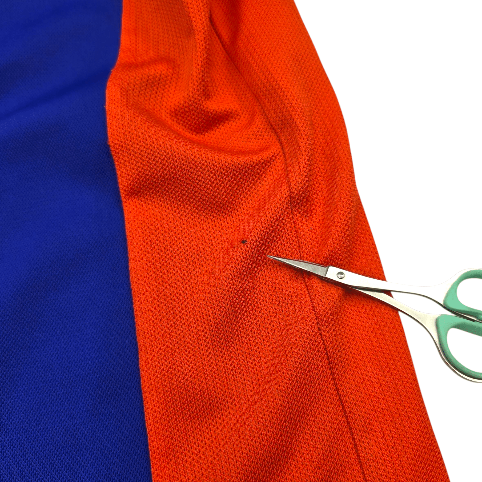 Condition: Very Good. Superb colours, material is smooth with a little light bobbling. A few very faint marks only visible upon close inspection, a small dark mark & pinhole to the left flank (see photos), no pulls or tears. A very faint dark stain on the lower chest of shirt (see photos). Embroidered manufacturer logo & stitched team badge are excellent. Collar, sleeves & hem are in fabulous condition.