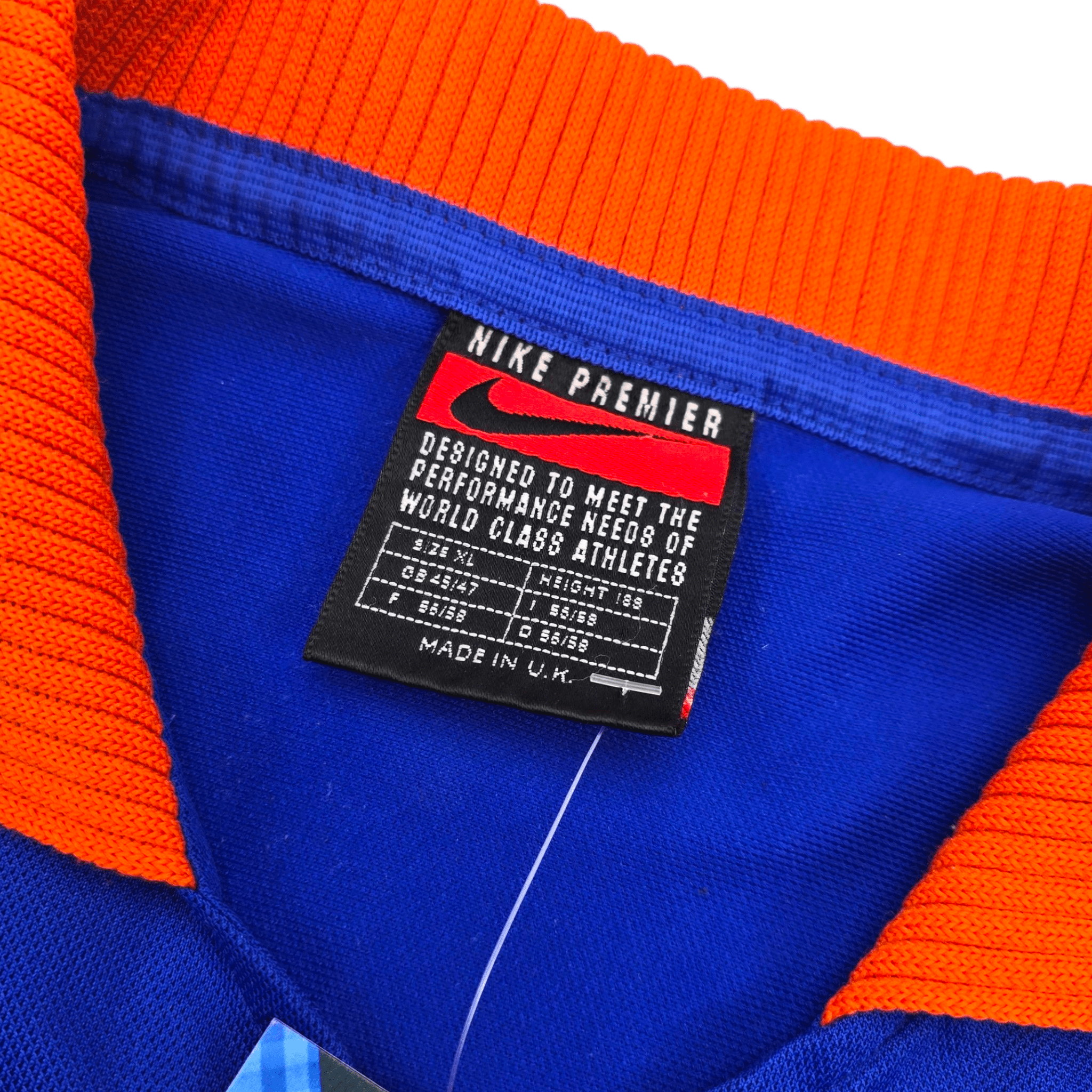 Information: Official Nike Holland away football shirt, as worn by 'Oranje' during the 1996/97 season, including their UEFA Euro 1996 campaign. A fantastic vintage jersey, ideal for a collection of your own or the perfect gift for any football fan.