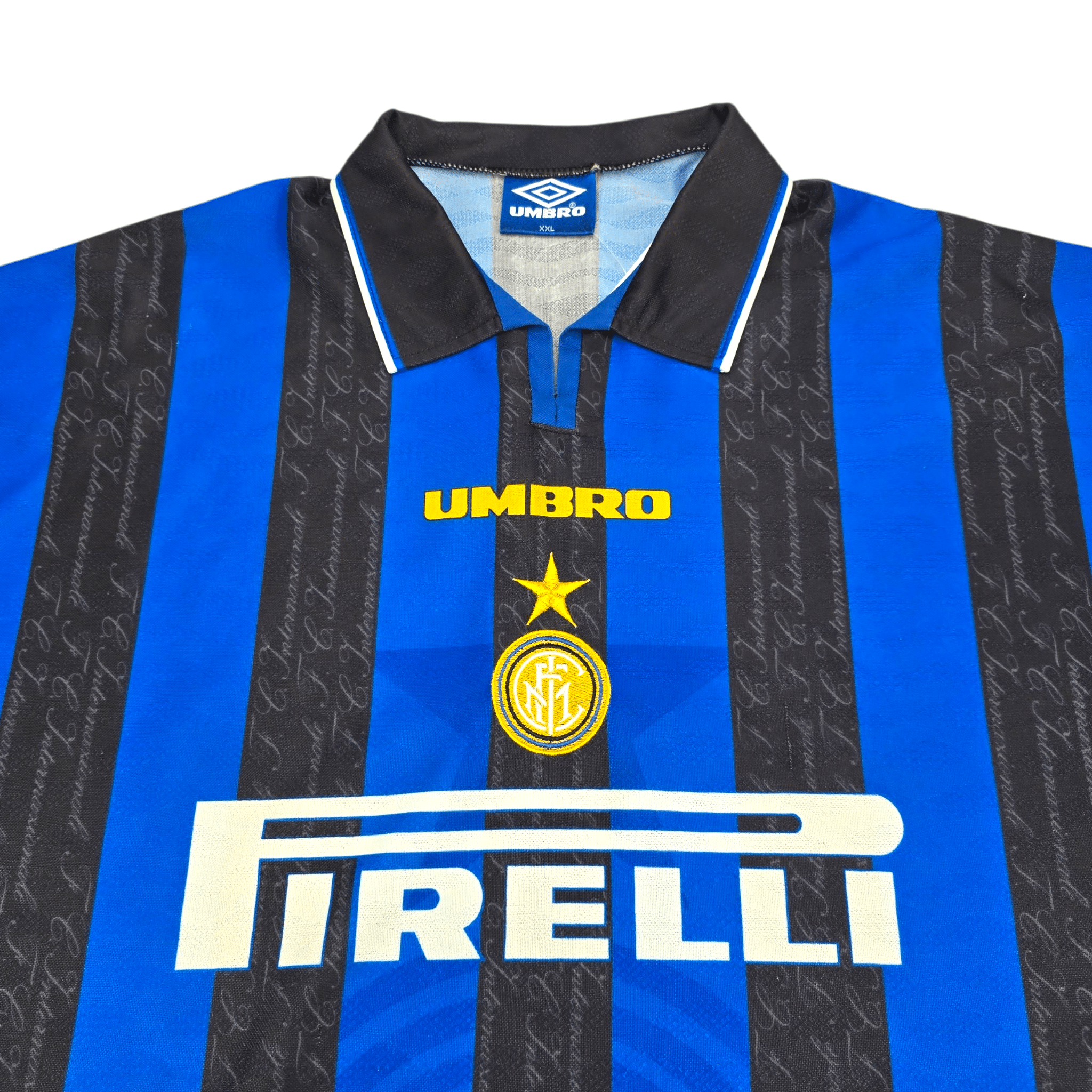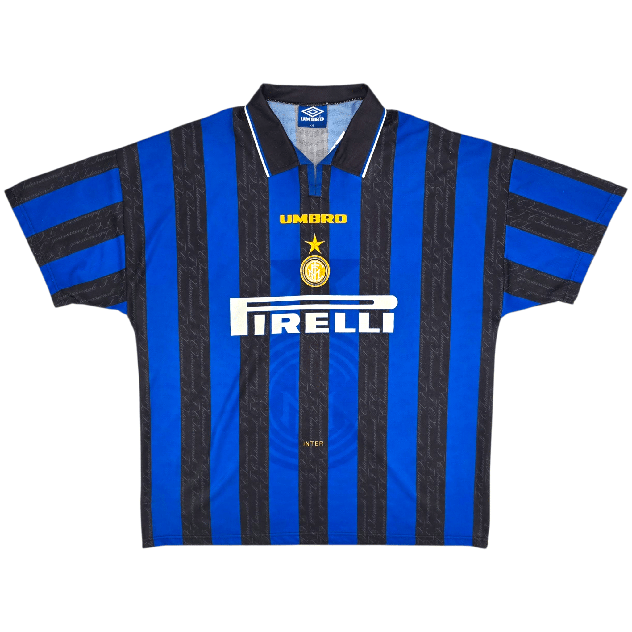 Information: Official Umbro Inter Milan home football shirt, as worn by 'I Nerazzurri' during the 1996/97 season. A fantastic vintage jersey, ideal for a collection of your own or the perfect gift for any football fan.