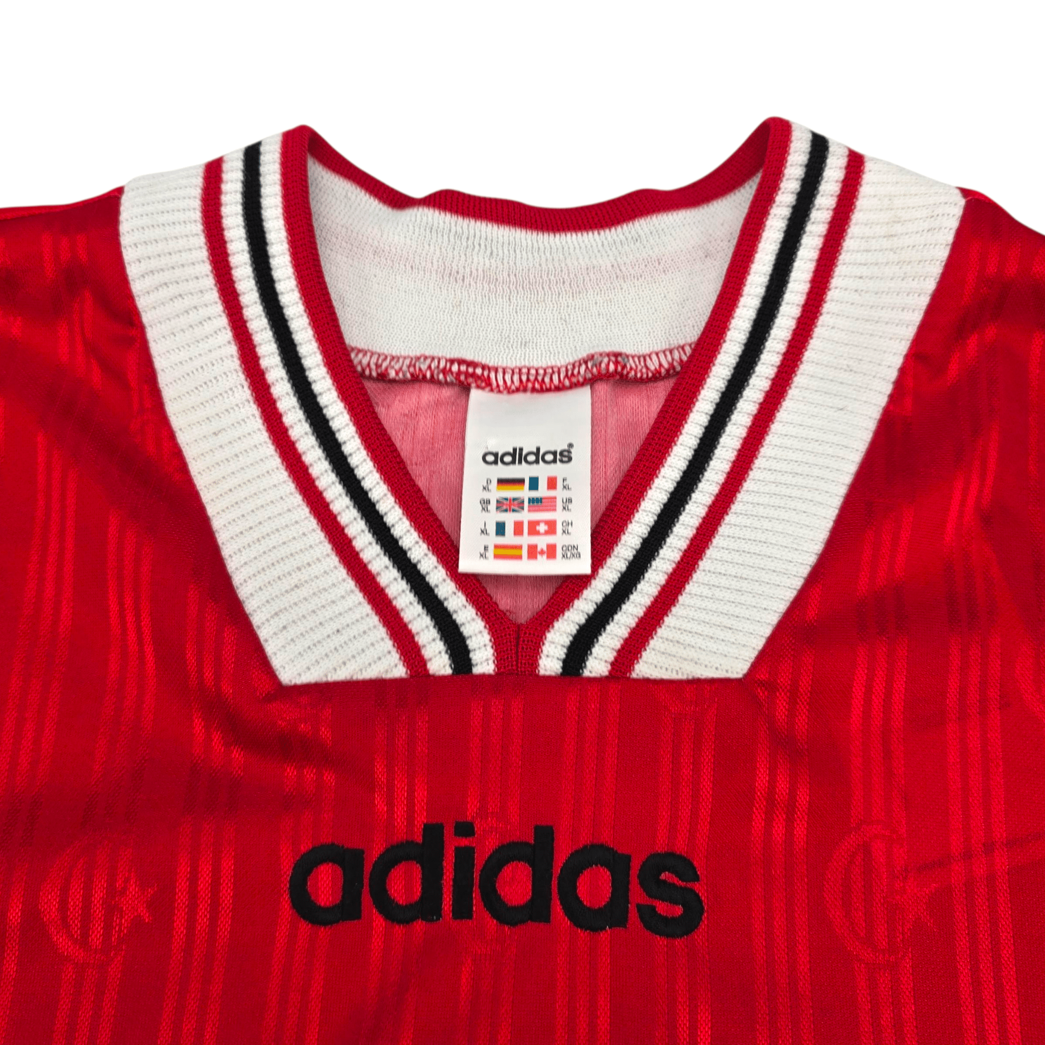 Information: Official Adidas Turkey home football shirt, as worn by 'The Crescent Stars' during the 1996/97 season, when the side made their first ever appearance at a European Championship in Euro 1996. A fantastic vintage jersey, ideal for a collection of your own or the perfect gift for any football fan.