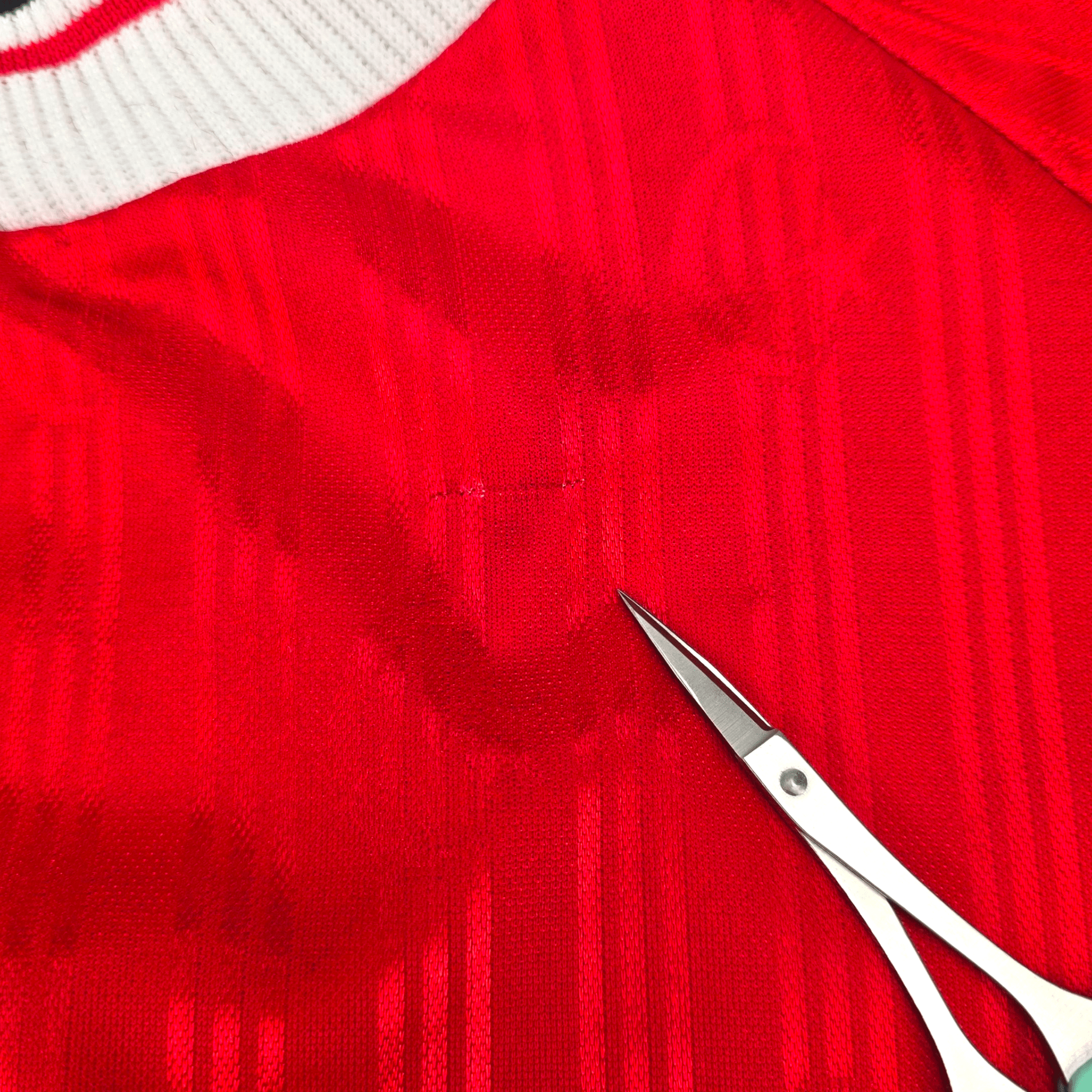 Condition: Excellent. Superb colours, material is smooth with a few bobbles & tiny pulls, one 2cm pull to reverse of right shoulder (see photo), no tears or holes. Embroidered manufacturer logo & stitched team badge are excellent. Collar, sleeves and hem are in fabulous condition.