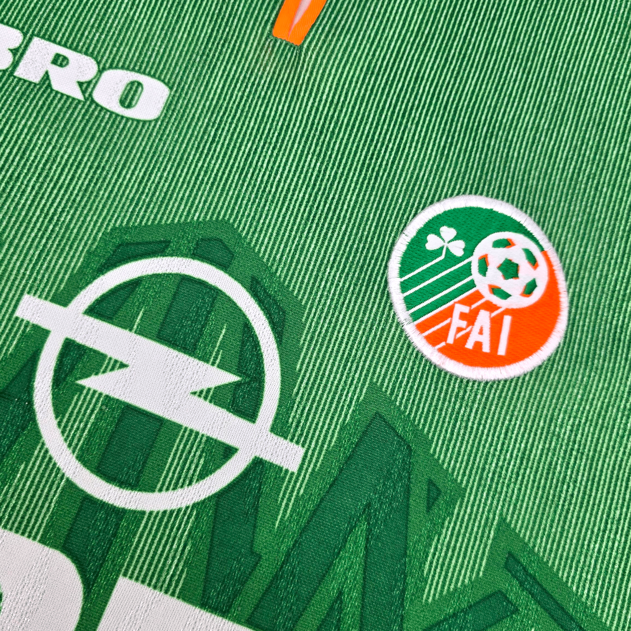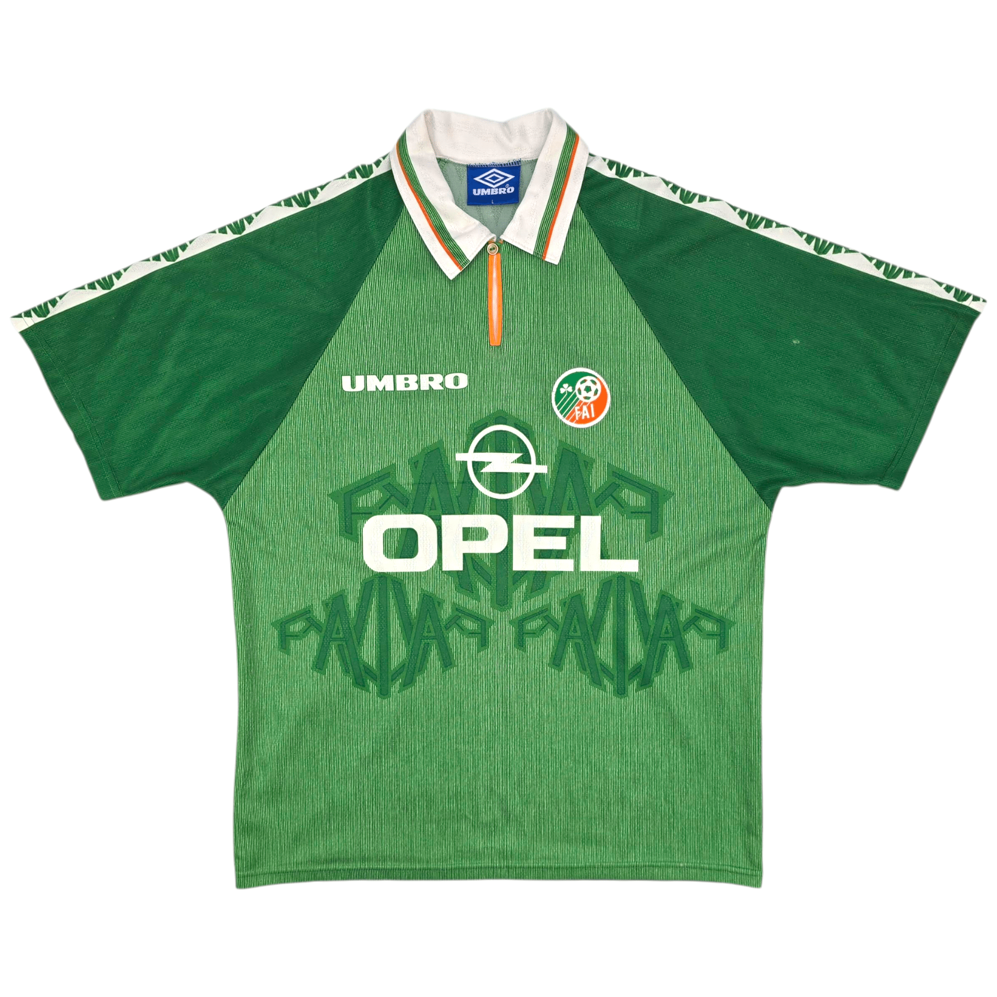 Information: Official Umbro Ireland home football shirt, as worn by 'The Boys in Green' between 1996-1998. The reverse of the shirt boasts the nameset of legend, Roy Keane. A fantastic vintage jersey, ideal for a collection of your own or the perfect gift for any football fan.