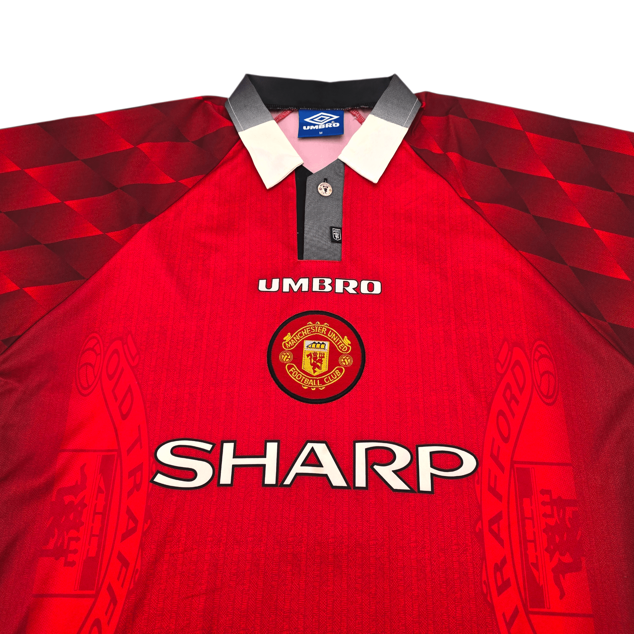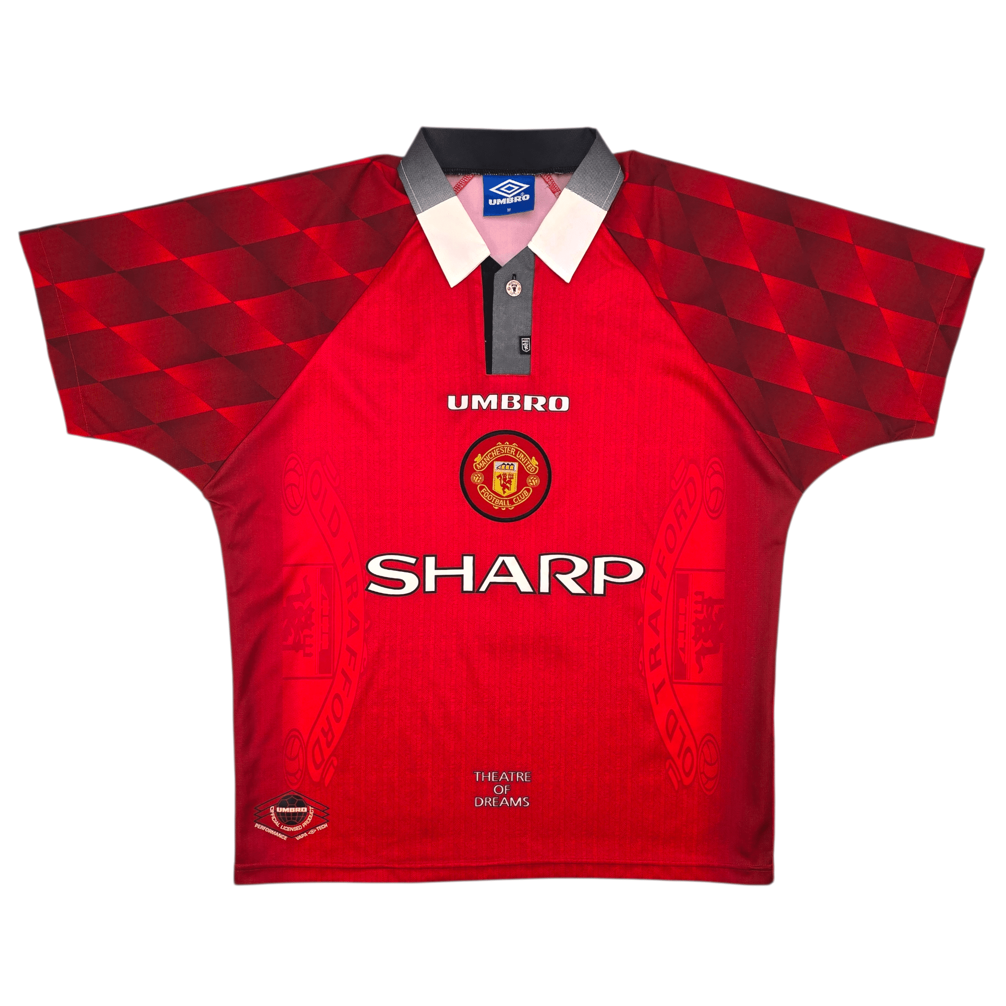 Information: Official Umbro Manchester United home football shirt, as worn by the ‘Red Devils’ between 1996-1998, when the side, under Sir Alex Ferguson, lifted the 1996/97 Premier League title and continued to dominate English football with a squad that blended experience and emerging superstars. The reverse of the shirt boasts the nameset of club legend, Eric Cantona. A fantastic vintage jersey, ideal for a collection of your own or the perfect gift for any football fan.