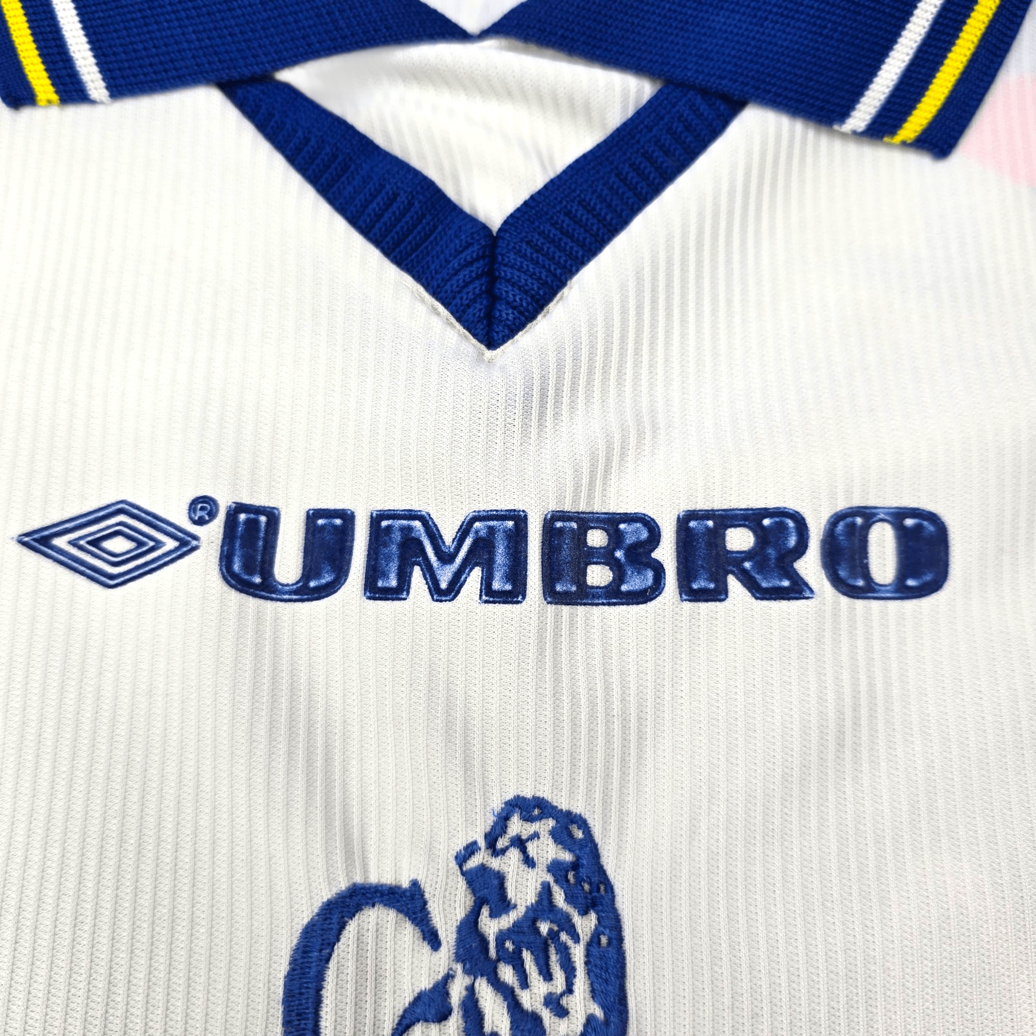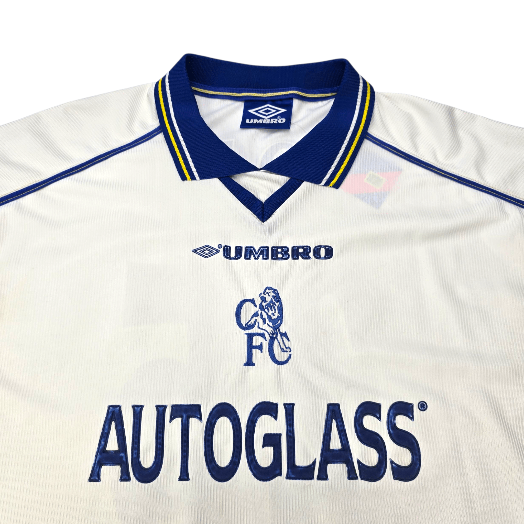 Information: Official Umbro Chelsea away football shirt, as worn by 'The Blues' between 1998-2000, when the side lifted the 2000 FA Cup. The reverse of the shirt boasts the nameset of club legend, Gianfranco Zola. A fantastic vintage jersey, ideal for a collection of your own or the perfect gift for any football fan.
