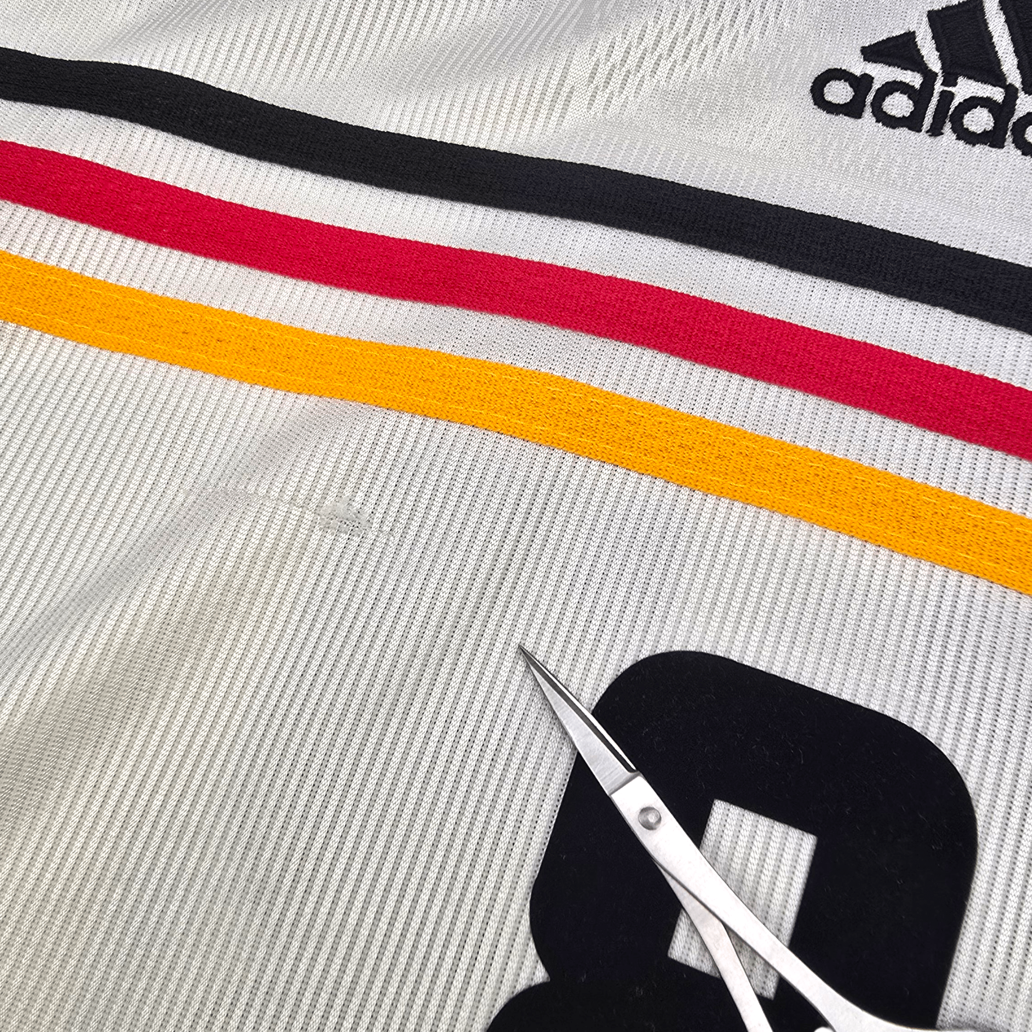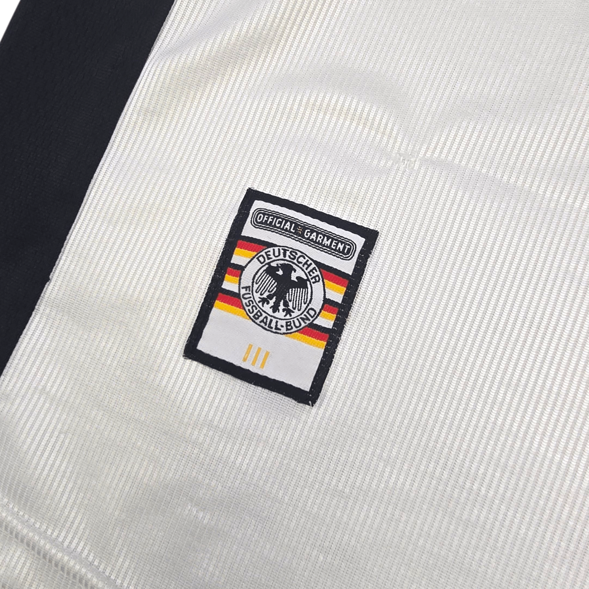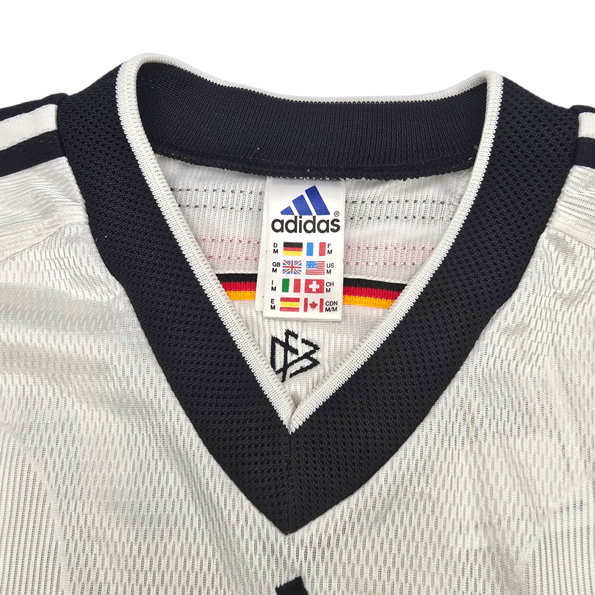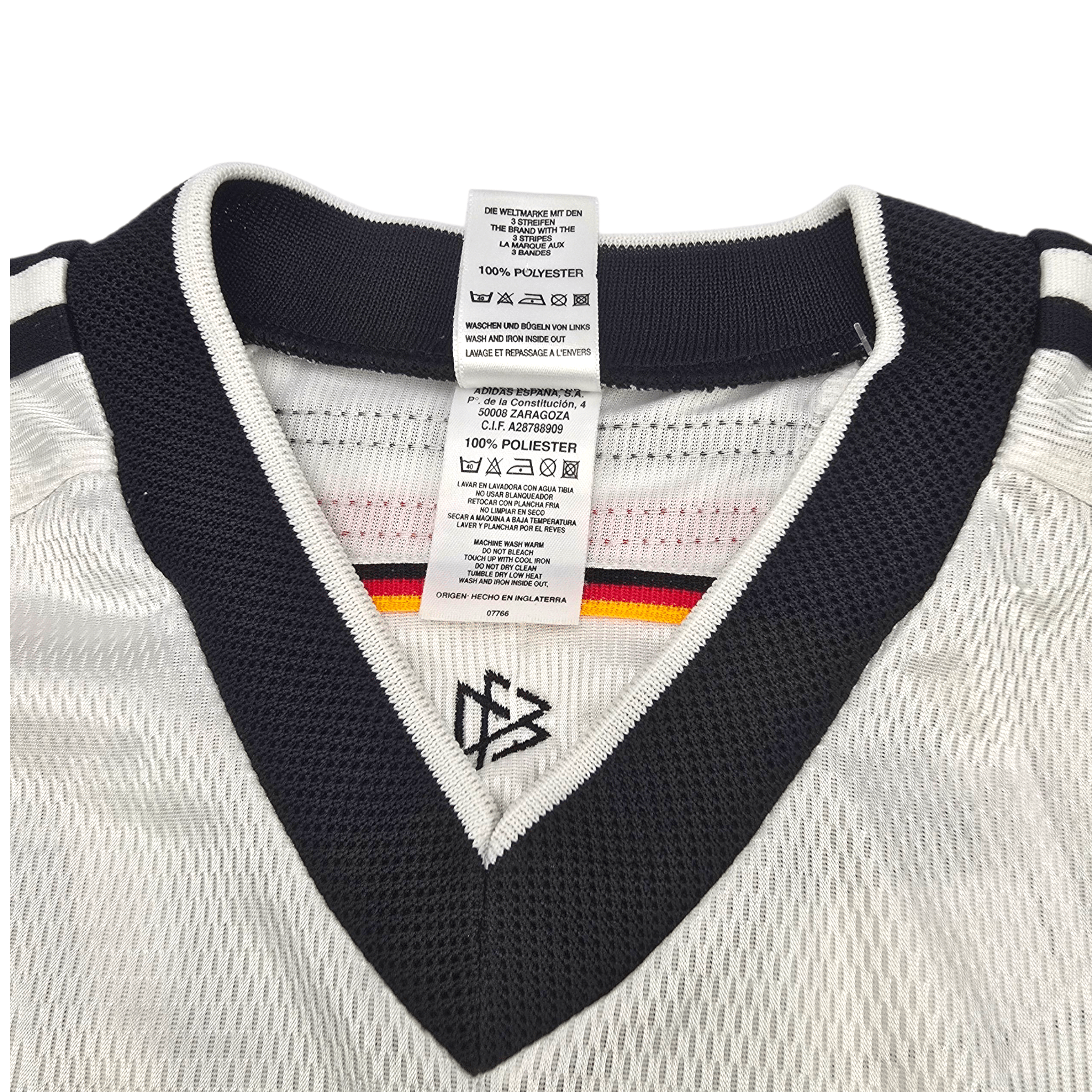 Information: Official Adidas Germany home football shirt, as worn by 'Die Mannschaft' between 1998-2000. The reverse of the shirt boasts the nameset of club legend, Lothar Matthäus. A fantastic vintage jersey, ideal for a collection of your own or the perfect gift for any football fan.