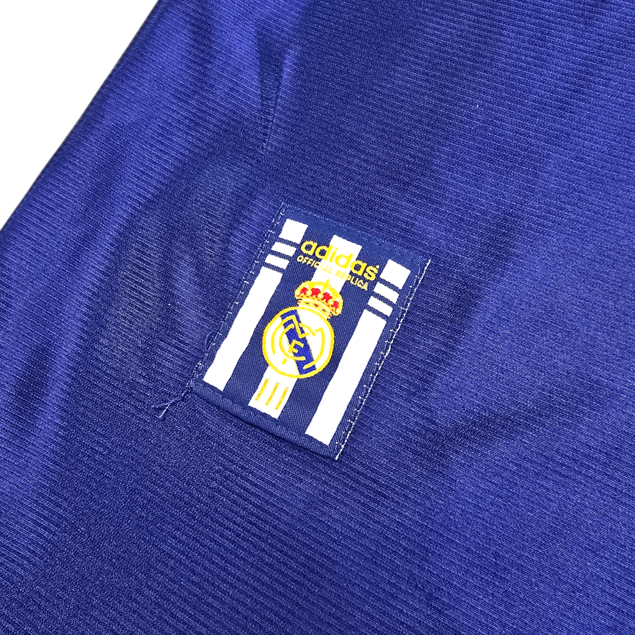 Information: Official Adidas Real Madrid third football shirt from 1998/00, as worn by ‘Los Blancos’ when Vicente del Bosque took over managerial duties from John Toshack, guiding the side to Champions League success in 2000 with a 3-0 victory in the Final against Valencia. A fantastic vintage jersey, ideal for a collection of your own or the perfect gift for any football fan.