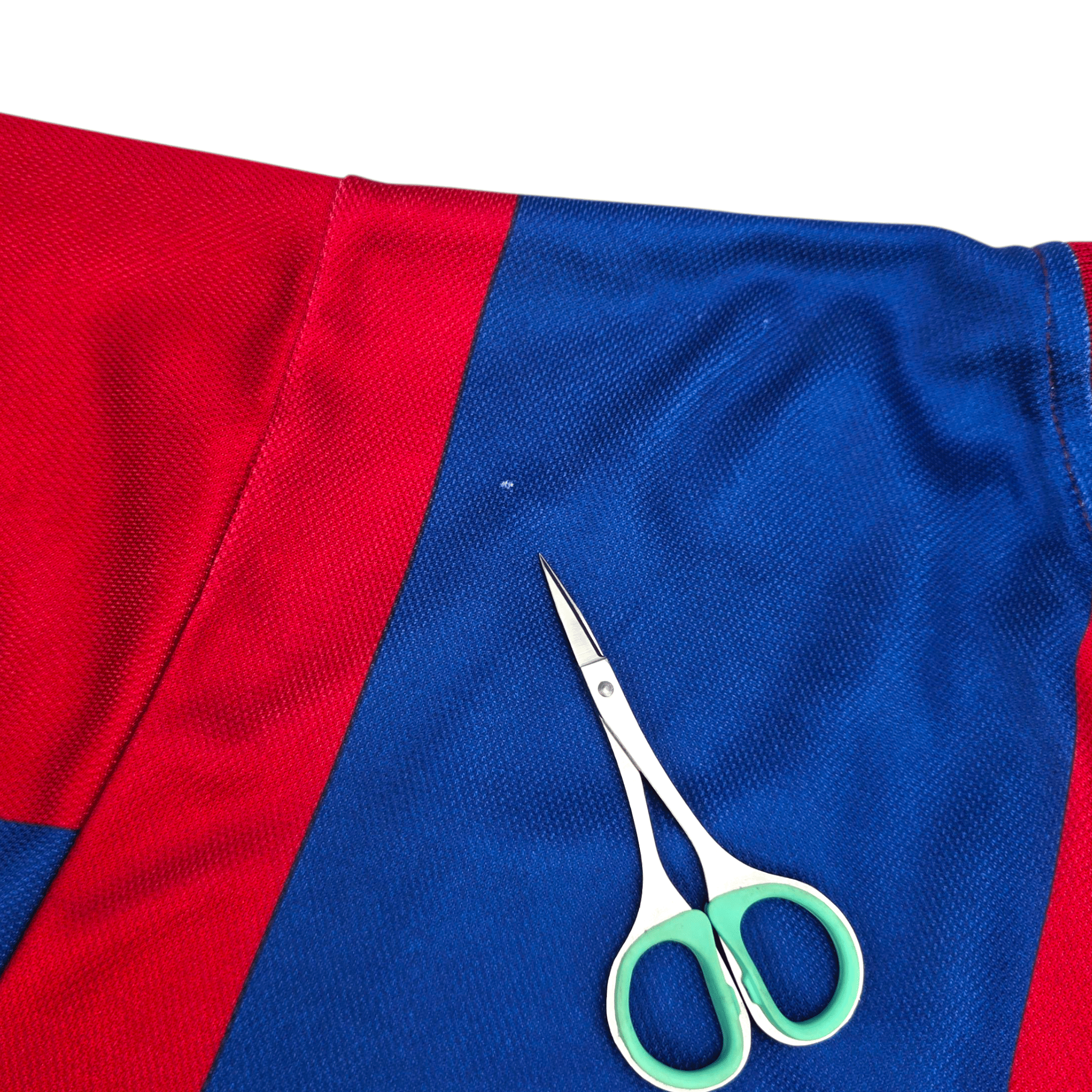 Condition: Excellent. Superb colours, material is smooth with a few tiny bobbles, one tiny material scuff to right shoulder (see photo), no pulls, tears or holes. Embroidered manufacturer logo & stitched club badge are excellent. Very light colour bleed onto vinyl player nameset only visible upon close inspection. Collar, sleeves and hem are in fabulous condition.