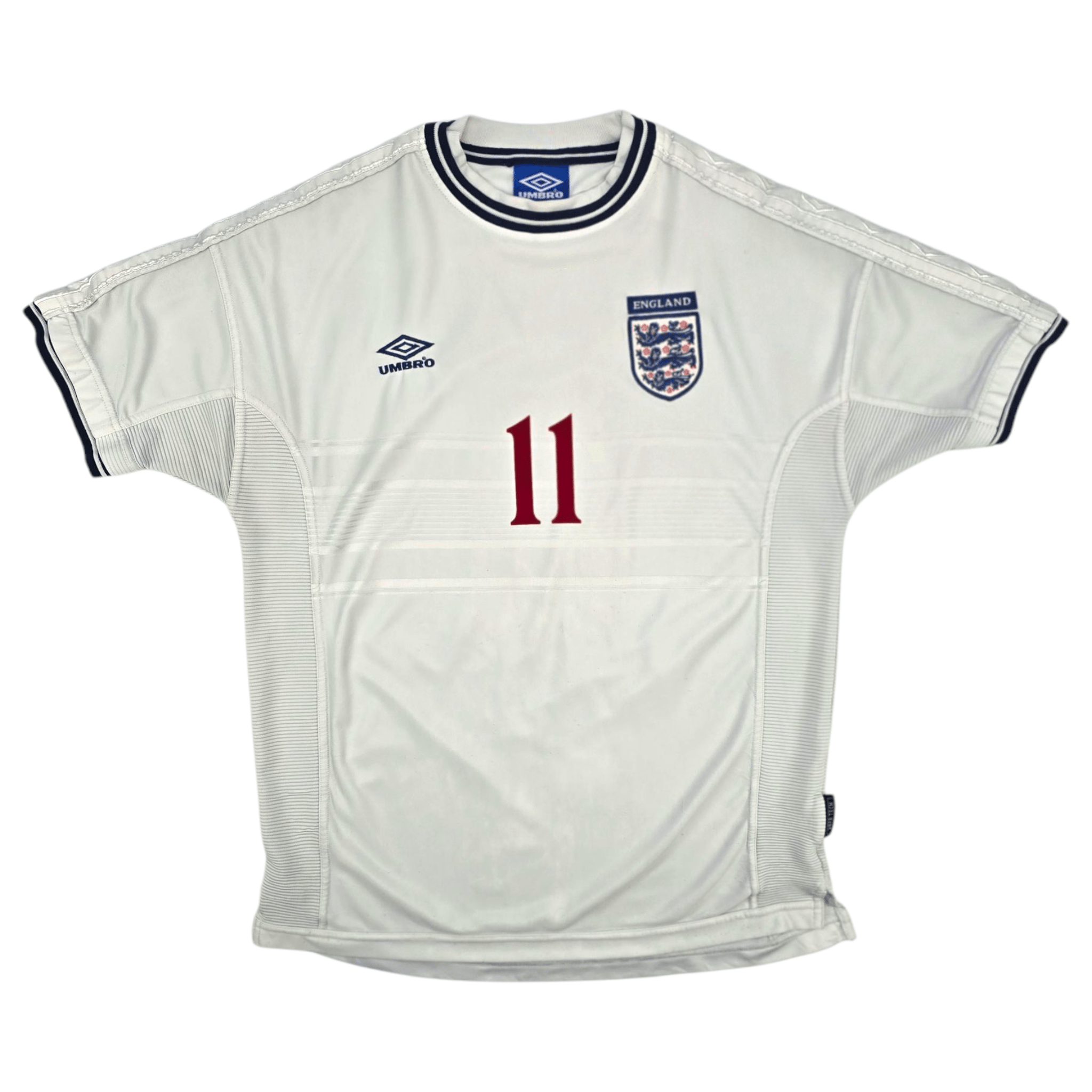 Information: Official Umbro England home football shirt from 1999/01, as worn by ‘The Three Lions’ at the 2000 European Championships, when the team beat arch-rivals Germany in the group stages. The reverse of the shirt boasts the nameset of Liverpool & Real Madrid legend, Steve McManaman, who made 37 appearances for his country. A fantastic vintage jersey, ideal for a collection of your own or the perfect gift for any football fan.