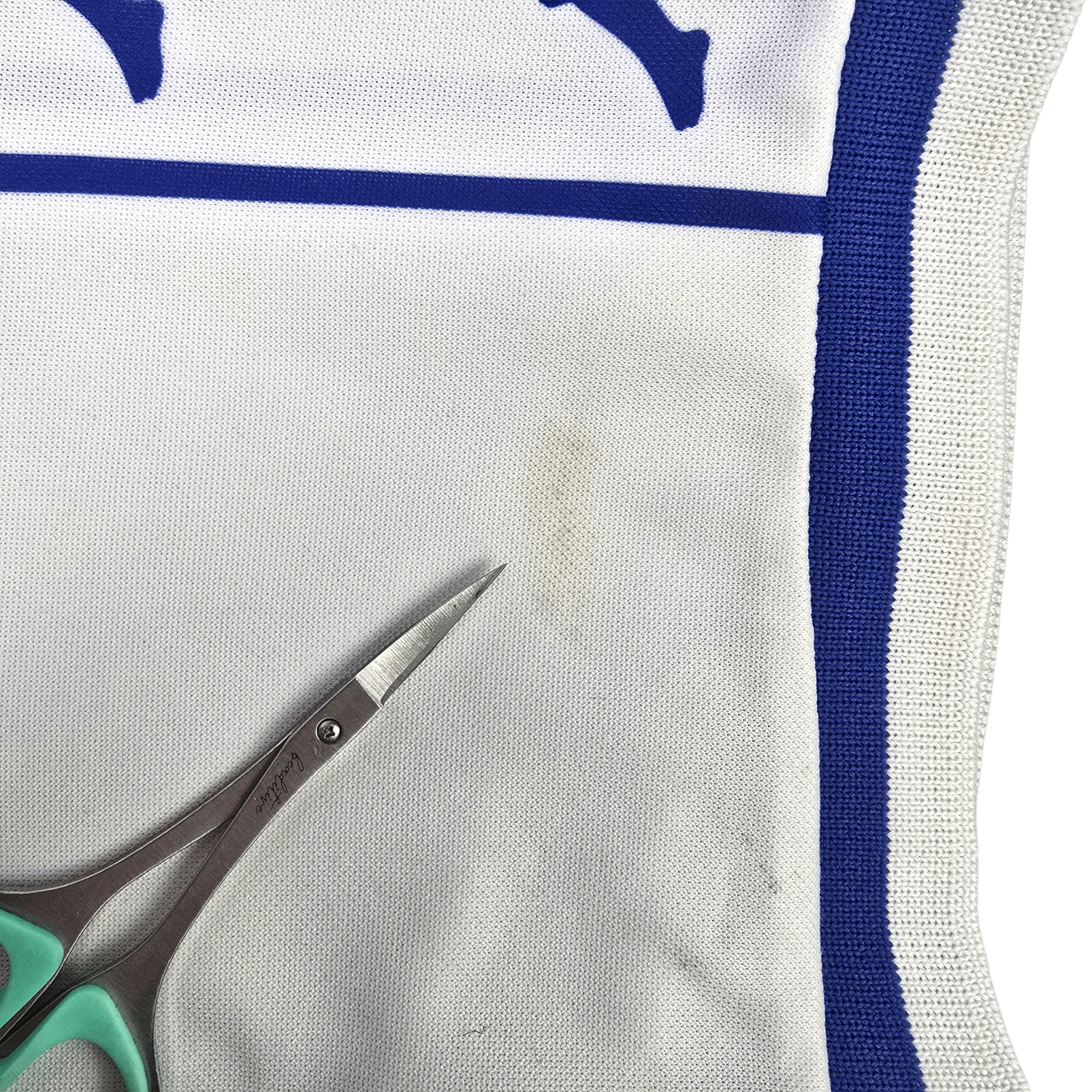Condition: Very Good. Slight discolouration to the manufacturing logo and club badge. Slight bobbles throughout and a couple marks on the sleeve and beneath the shirt sponsor (all shown in the photos). Otherwise, the shirt is in very good condition for its age.
