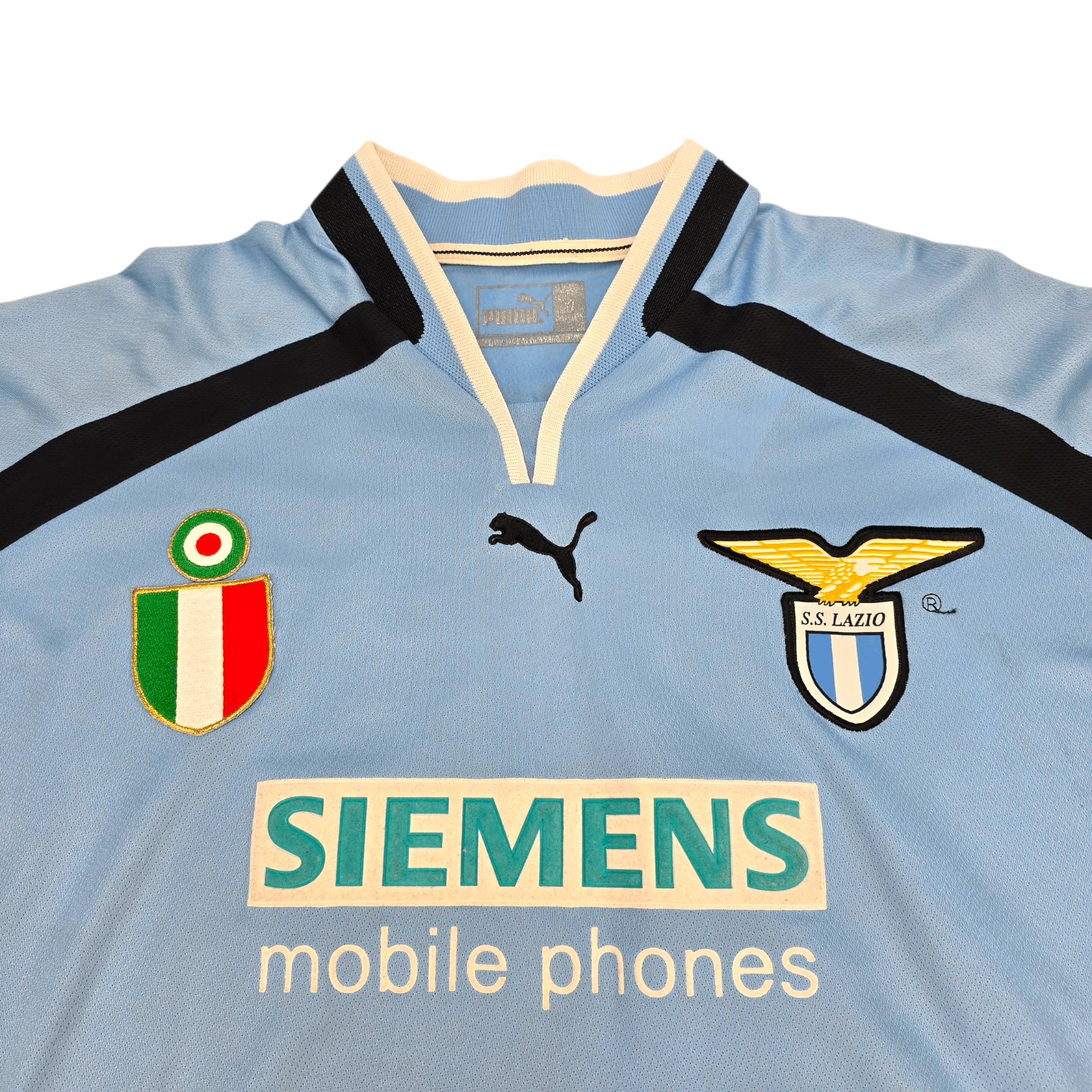 Information: Official Puma Lazio home football shirt, as worn by 'I Biancocelesti' during the 2000/01 season. The reverse of the shirt boasts the nameset of club legend, Hernán Crespo. A fantastic vintage jersey, ideal for a collection of your own or the perfect gift for any football fan.