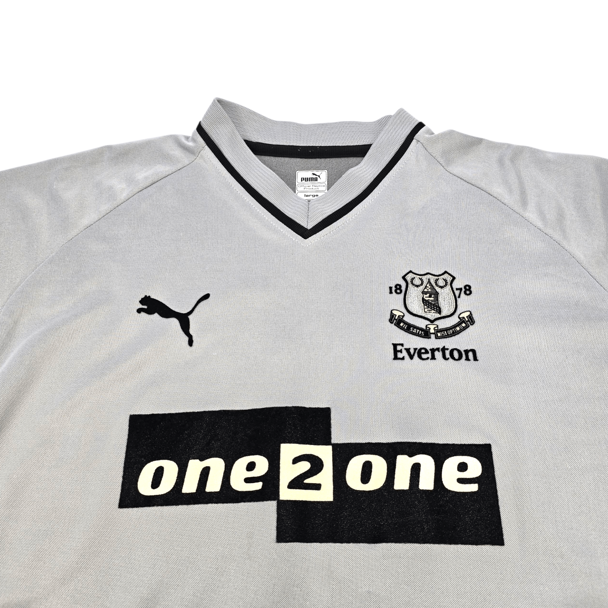 Information: Official Puma Everton away football shirt, as worn by 'The Toffees' during the 2001/02 season. The reverse of the shirt boasts the nameset of club legend, Duncan Ferguson. A fantastic vintage jersey, ideal for a collection of your own or the perfect gift for any football fan.