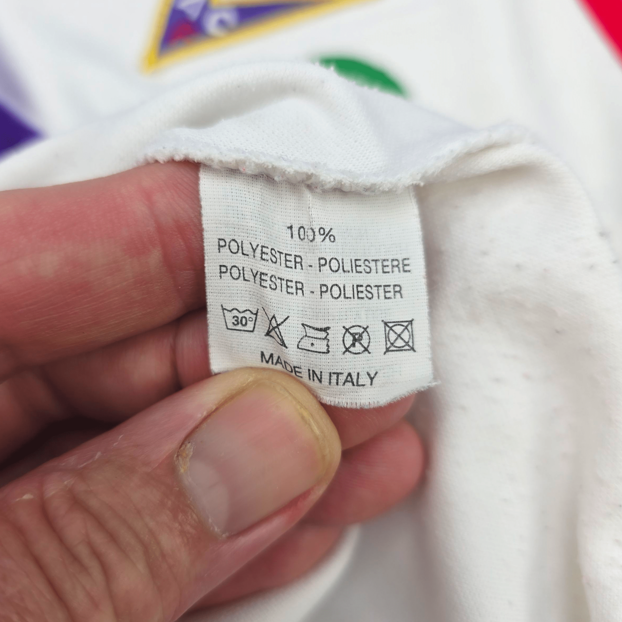 Information: Official Mizuno Fiorentina away football shirt, as worn by 'La Viola' during the 2001/02 season. The reverse of the shirt boasts the nameset of club legend, Giampaolo Morfeo. A fantastic vintage jersey, ideal for a collection of your own or the perfect gift for any football fan.