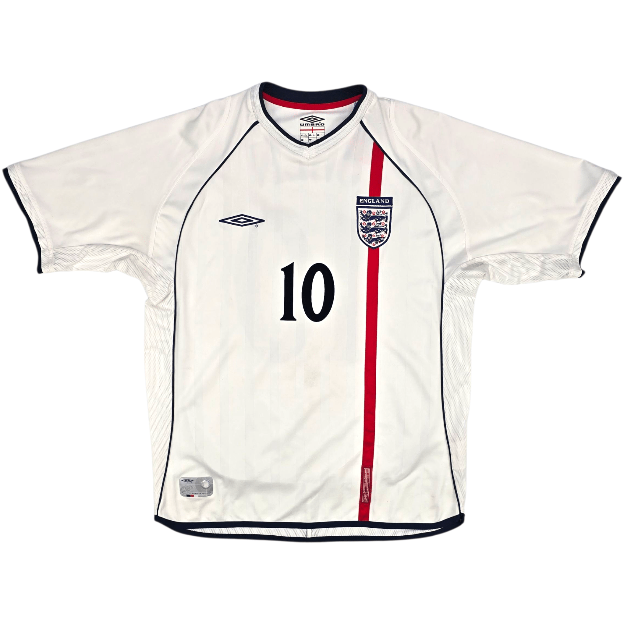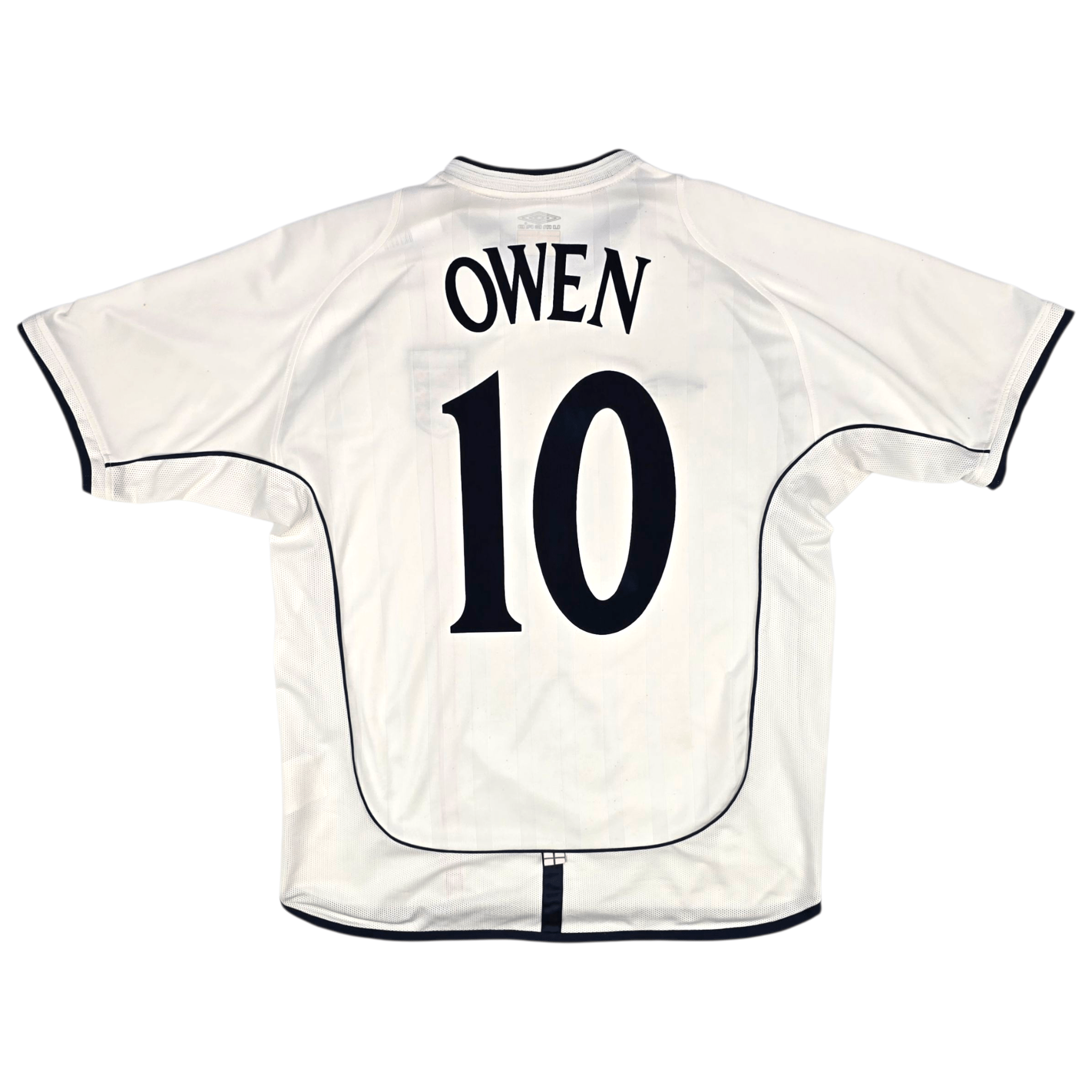 Information: Official Umbro England home football shirt, as worn by 'The Three Lions' between 2001-2003. The reverse of the shirt boasts the nameset of club legend, Michael Owen. A fantastic vintage jersey, ideal for a collection of your own or the perfect gift for any football fan.