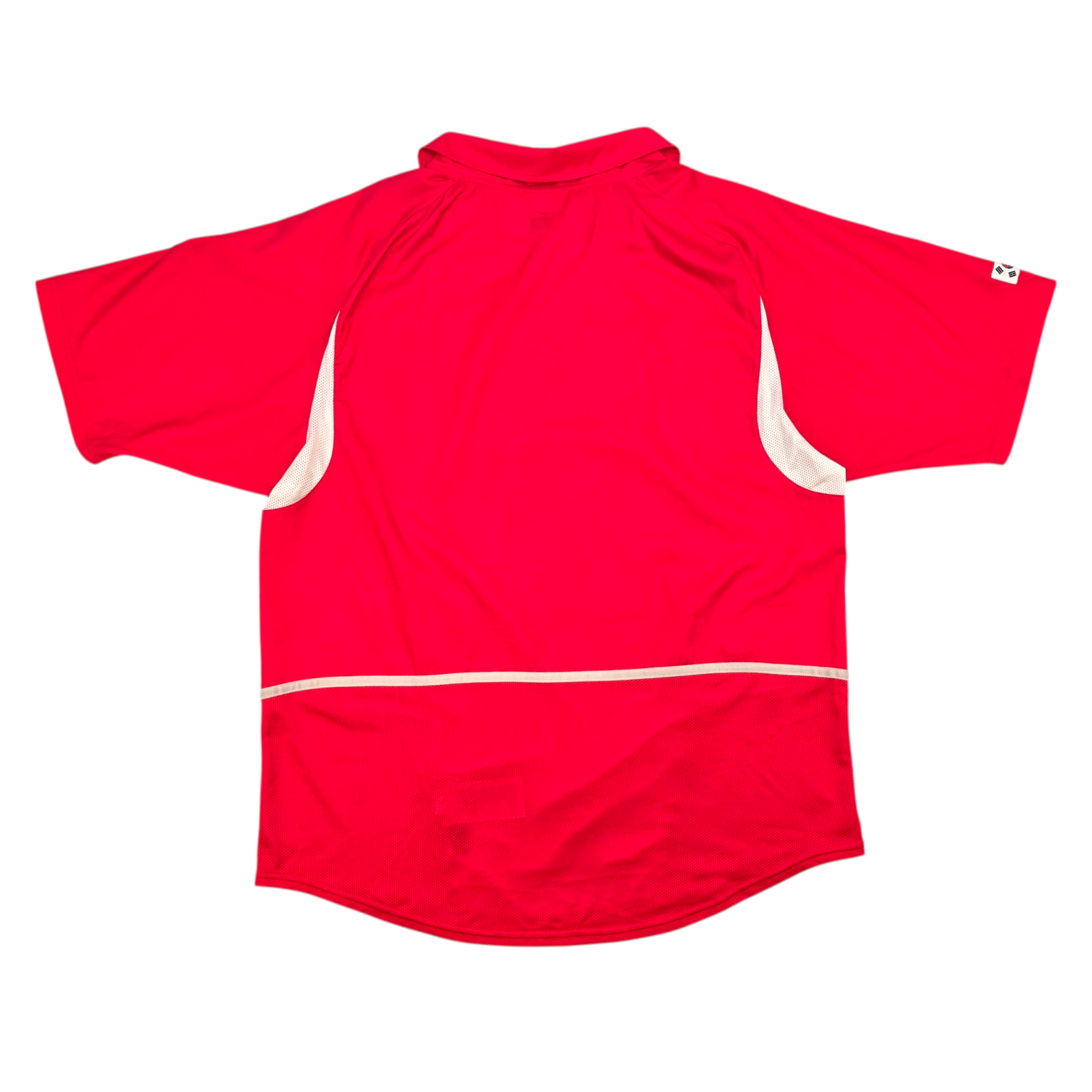 Information: Official Nike South Korea home football shirt, as worn by the ‘Taegeuk Warriors’ during the 2002/03 season, when the side famously reached the semi-finals of the 2002 World Cup on home soil under Guus Hiddink — the nation’s greatest ever football achievement. A fantastic vintage jersey, ideal for a collection of your own or the perfect gift for any football fan.