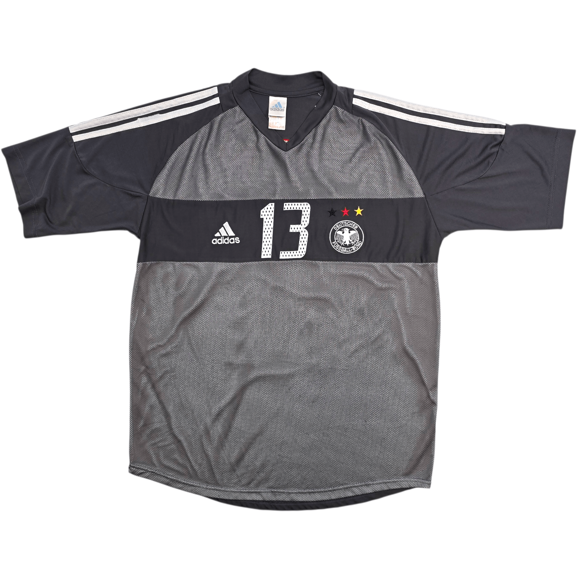 Information: Official Adidas Germany away football shirt, as worn by ‘Die Mannschaft’ between 2002–2004, when the national side reached the 2002 World Cup Final in Japan and South Korea, defying expectations with a resilient and disciplined tournament run. The reverse of the shirt boasts the nameset of team legend, Michael Ballack. A fantastic vintage jersey, ideal for a collection of your own or the perfect gift for any football fan.