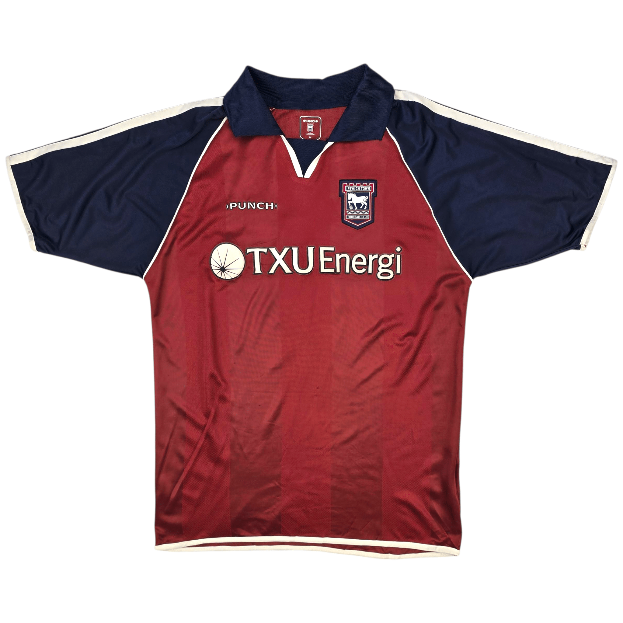 Information: Official Punch Ipswich Town away football shirt, as worn by 'The Tractor Boys' between 2002-2004.. The reverse of the shirt boasts the nameset of club legend, Pablo Couñago. A fantastic vintage jersey, ideal for a collection of your own or the perfect gift for any football fan.