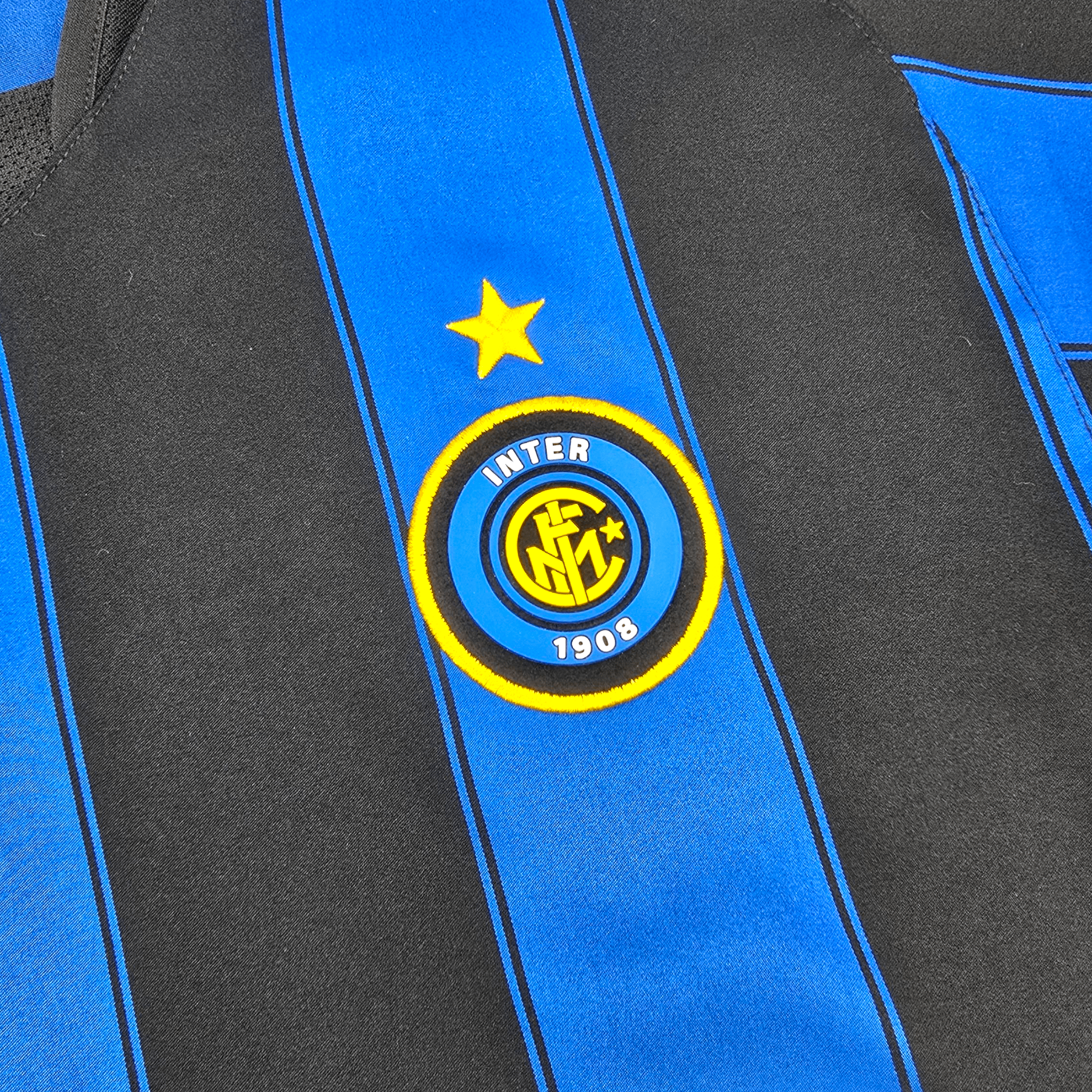 Information: Official Nike Inter Milan home football shirt, as worn by 'I Nerazzurri' during the 2003/04 season, when the side finished fourth in Serie A and reached the Champions League quarter-finals under Alberto Zaccheroni. The reverse of the shirt boasts the nameset of club legend, Adriano. Asian market issue, so has internal wash labels for the region. A fantastic vintage jersey, ideal for a collection of your own or the perfect gift for any football fan.