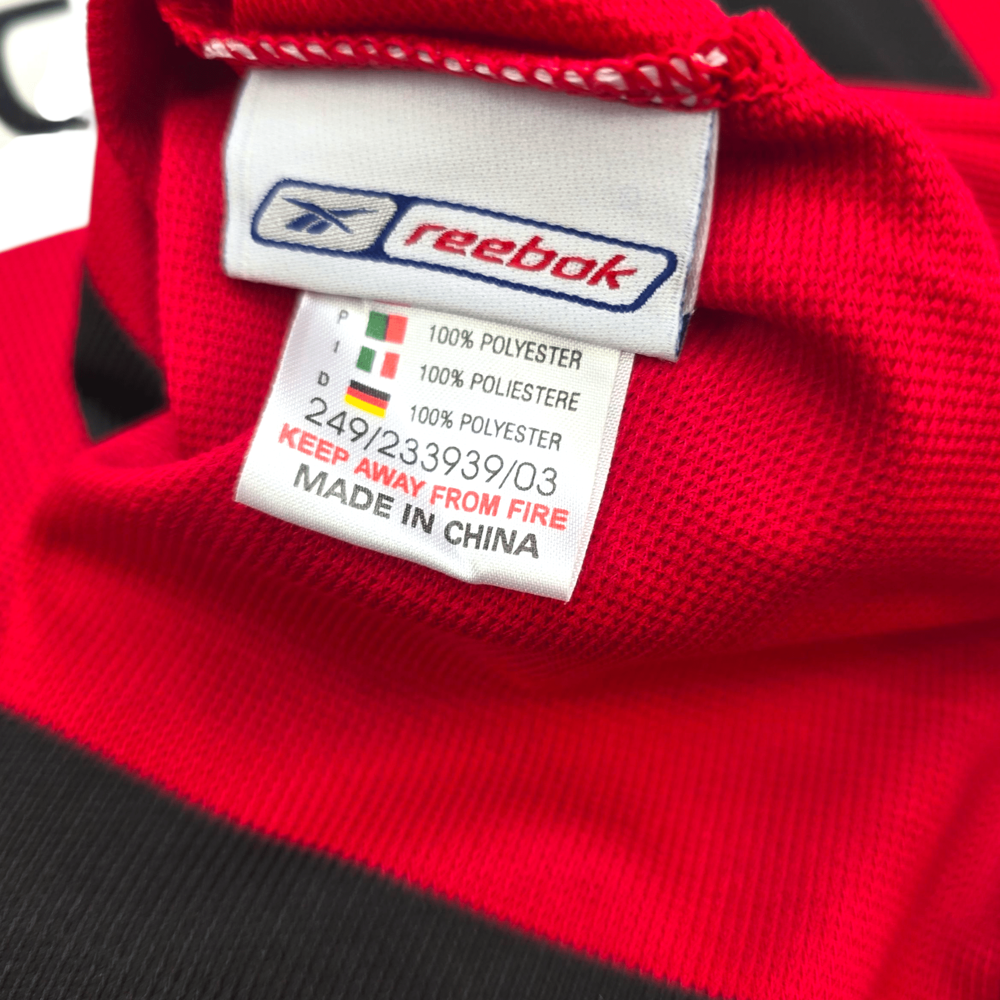Information: Official Reebok Manchester City away football shirt, as worn by 'The Citizens' during the 2003/04 season. The reverse of the shirt boasts the nameset of club legend, Nicolas Anelka. A fantastic vintage jersey, ideal for a collection of your own or the perfect gift for any football fan.