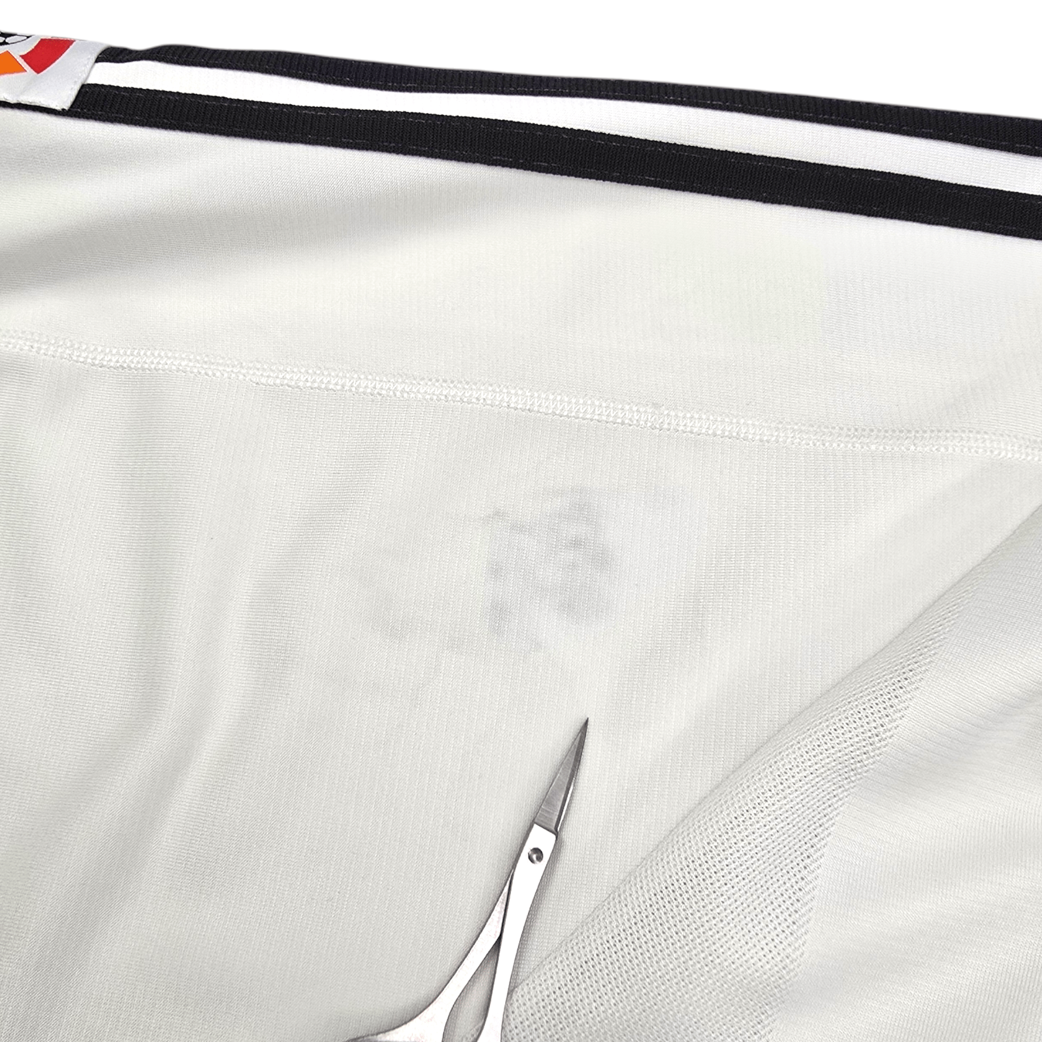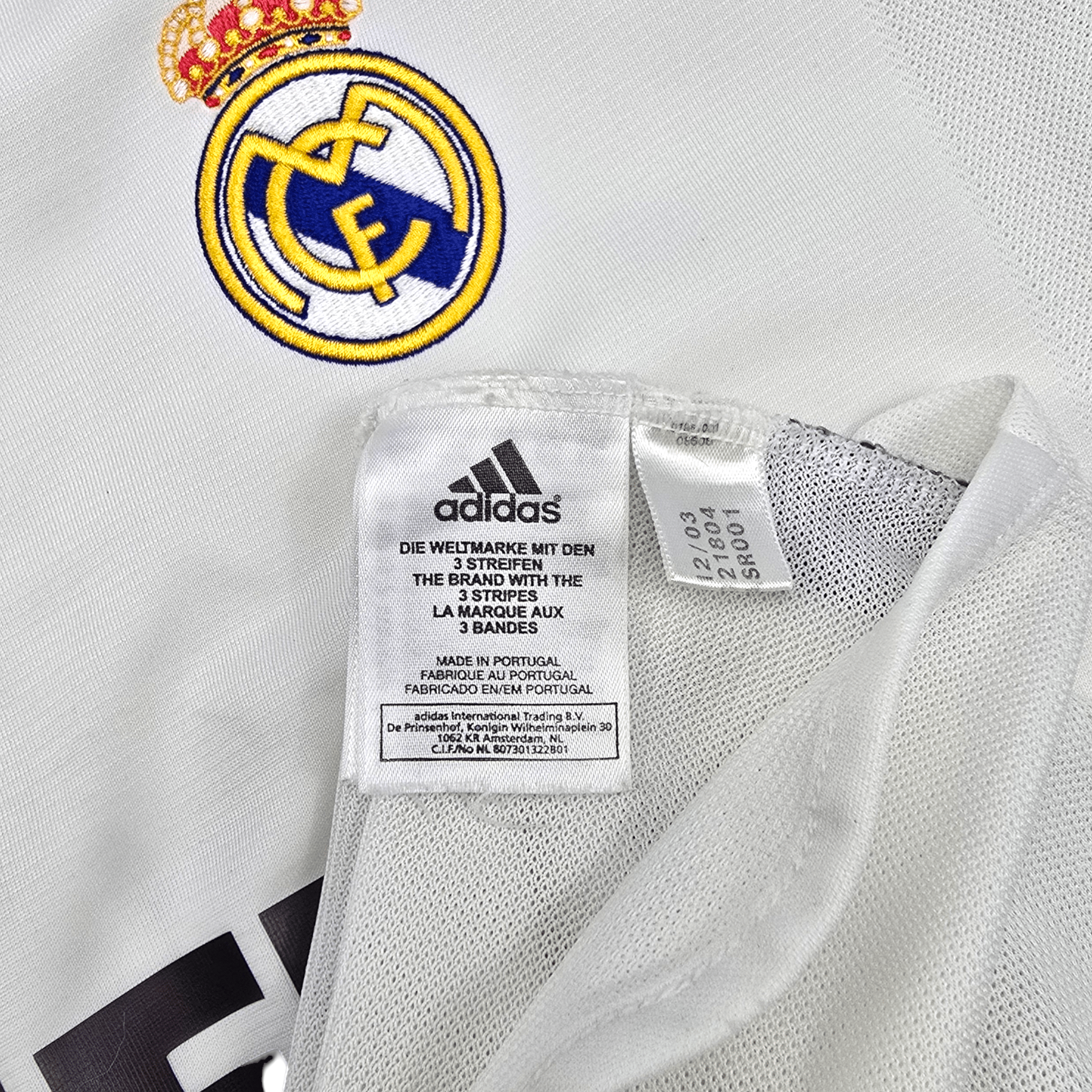 Information: Official Adidas Real Madrid home football shirt from 2003/04, as worn by 'Los Blancos' when they finished 4th in La Liga, runners-up in the Copa del Rey, reached the UEFA Champions League quarter finals, whilst also triumphing in the Supercopa de Espana. The reverse of the shirt boasts the nameset of England captain, David Beckham, who made 116 appearances during his successful spell in Spain, scoring 16 goals and becoming a firm fan's favourite. A fantastic vintage jersey, ideal for a collection of your own or the perfect gift for any football fan.
