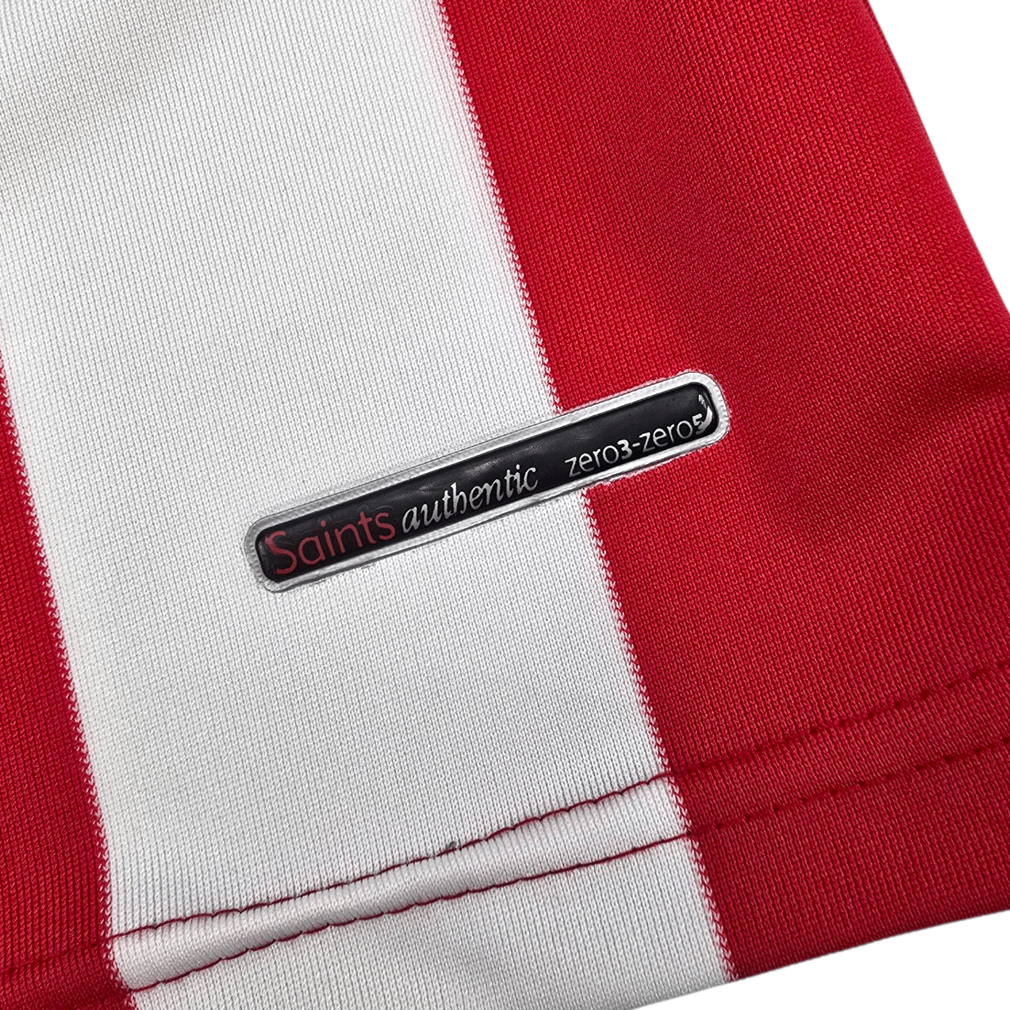 Information: Official Saints Southampton home football shirt, as worn by 'The Saints' between 2003-2005, when the side competed in the Premier League and battled to maintain their top-flight status. The reverse of the shirt boasts the nameset of club legend, James Beattie. A fantastic vintage jersey, ideal for a collection of your own or the perfect gift for any football fan.