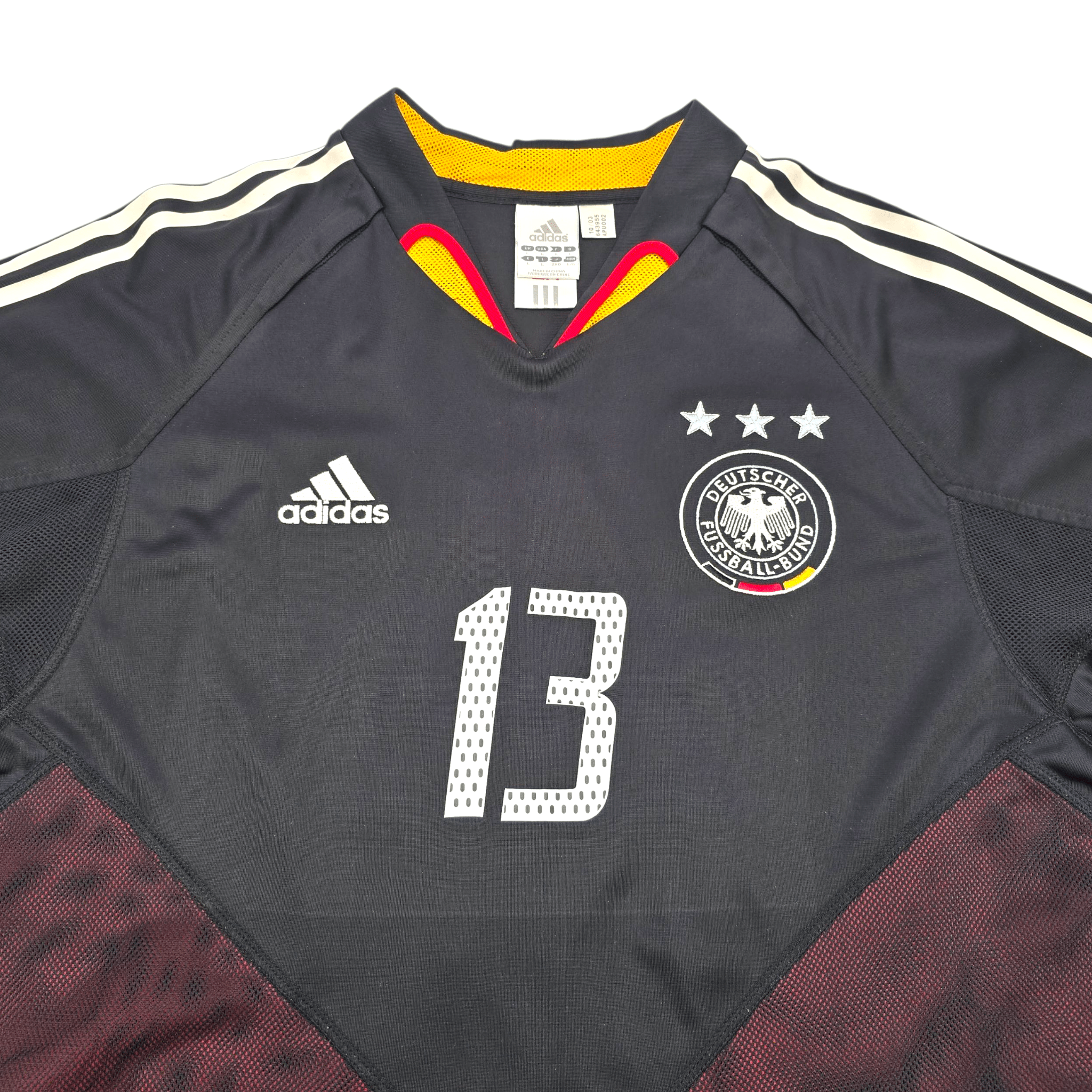 Information: Official Adidas Germany away football shirt, as worn by 'Die Mannschaft' during the 2004/05 season, including their UEFA Euro 2004 campaign. The reverse of the shirt boasts the nameset of midfield legend, Michael Ballack. A fantastic vintage jersey, ideal for a collection of your own or the perfect gift for any football fan.