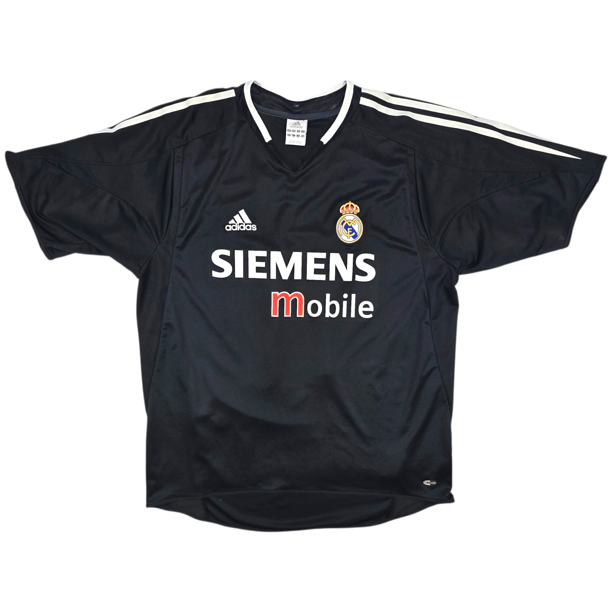 Information: Official Adidas Real Madrid away football shirt, as worn by 'Los Blancos' during the 2004/05 season. The reverse of the shirt boasts the nameset of club legend, Michael Owen. A fantastic vintage jersey, ideal for a collection of your own or the perfect gift for any football fan.