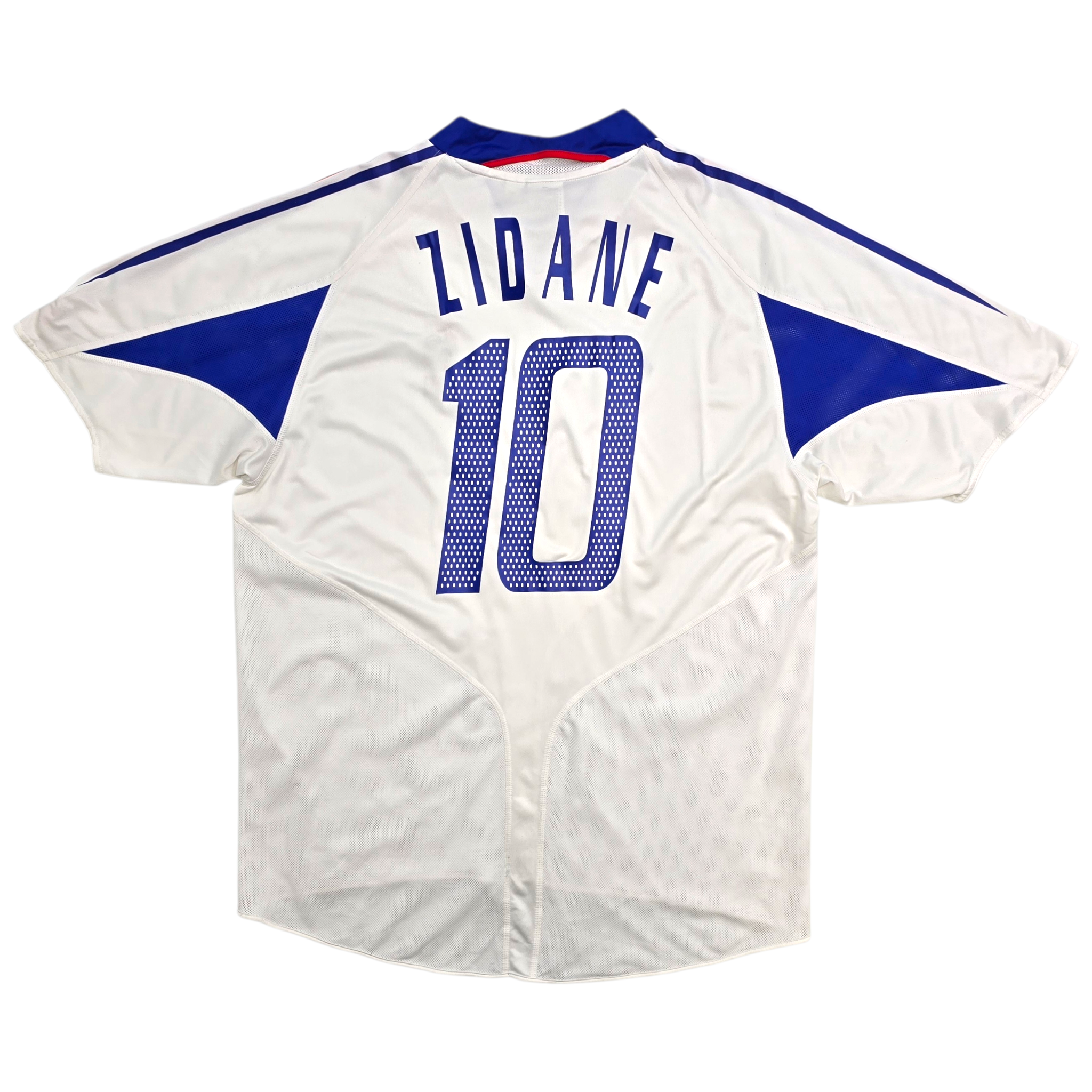 Information: Official Adidas France away football shirt, as worn by ‘Les Bleus’ between 2004–2006, when the national side embarked on a remarkable run to the 2006 World Cup Final, reasserting themselves on the world stage after a period of transition. The reverse of the shirt boasts the nameset of team legend, Zinedine Zidane. A fantastic vintage jersey, ideal for a collection of your own or the perfect gift for any football fan.