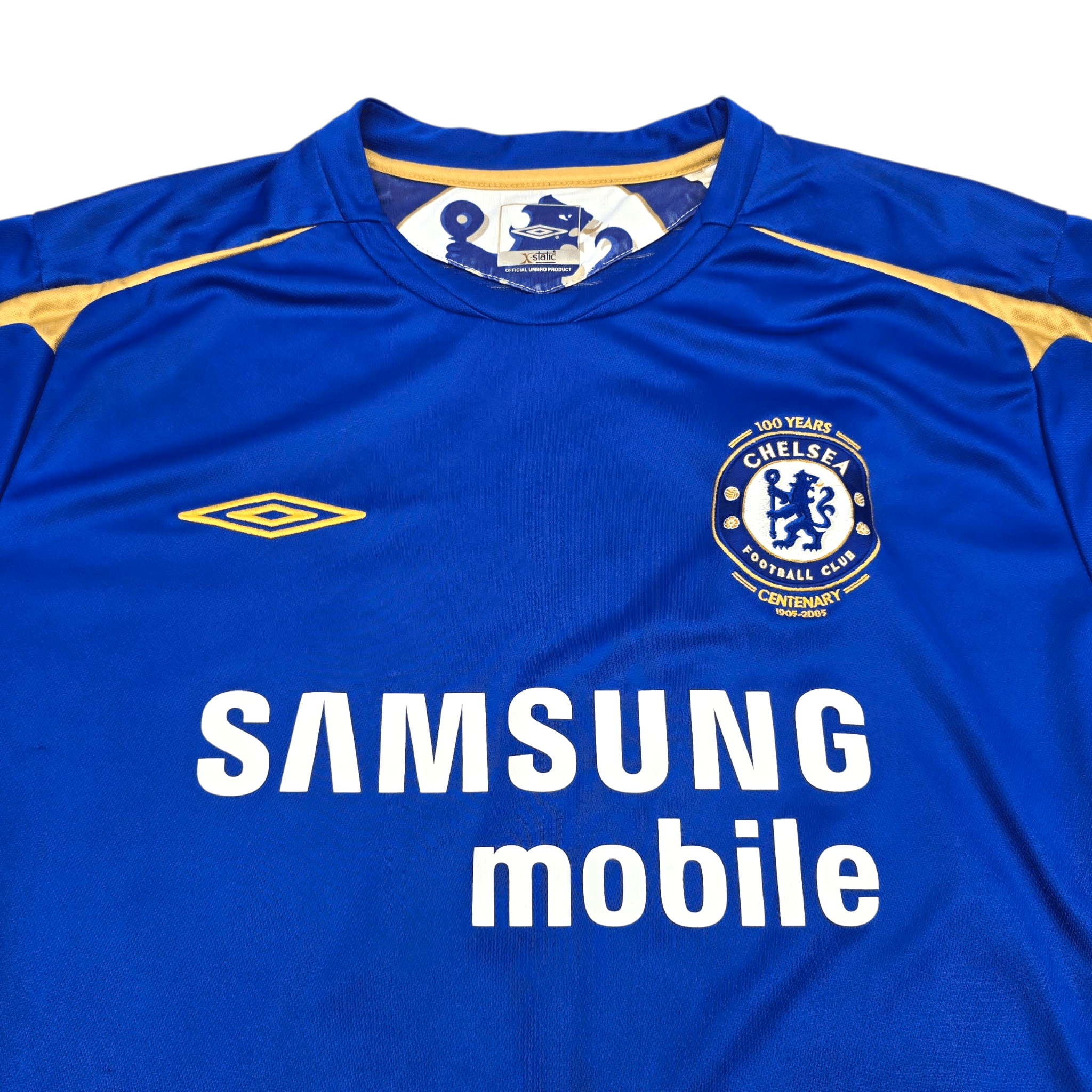 Information: Official Umbro Chelsea home football shirt, as worn by 'The Blues' during the 2005/06 season, when the side retained the Premier League title under José Mourinho, finishing eight points clear at the top of the table. The reverse of the shirt boasts the nameset of club legend, John Terry. A fantastic vintage jersey, ideal for a collection of your own or the perfect gift for any football fan.