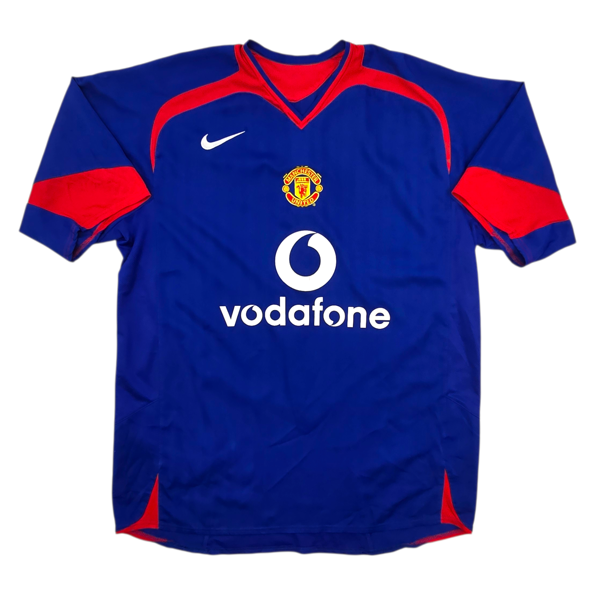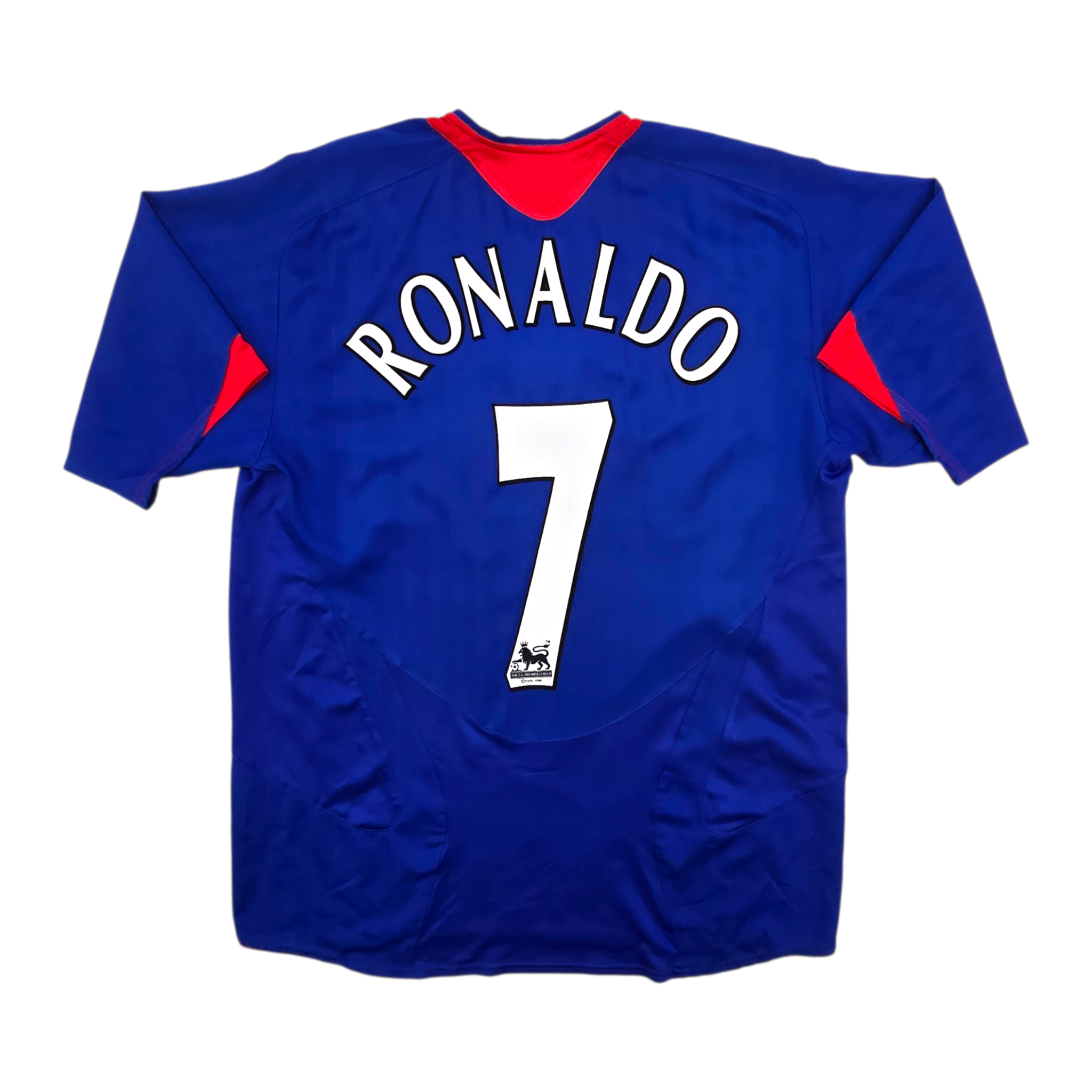 Information: Official Nike Manchester United away football shirt, as worn by ‘The Red Devils’ during the 2005/06 season, when the side won the League Cup with a convincing 4‑0 victory over Wigan Athletic at the Millennium Stadium and competed strongly in the Premier League in a campaign that helped shape Cristiano Ronaldo’s rise to global superstardom. The reverse of the shirt boasts the nameset of club legend, Cristiano Ronaldo. A fantastic vintage jersey, ideal for a collection of your own or the perfect gift for any football fan.