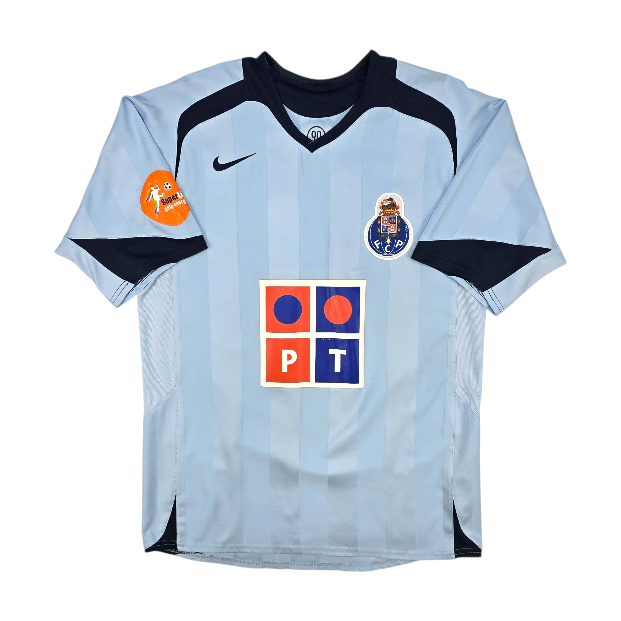 Information: Official Nike FC Porto away football shirt, as worn by 'Dragões' during the 2005/06 season, when the side lifted the Primeira Liga title under coach Co Adriaanse and also won the Portuguese Super Cup. A fantastic jersey, ideal for a collection of your own or the perfect gift for any football fan.