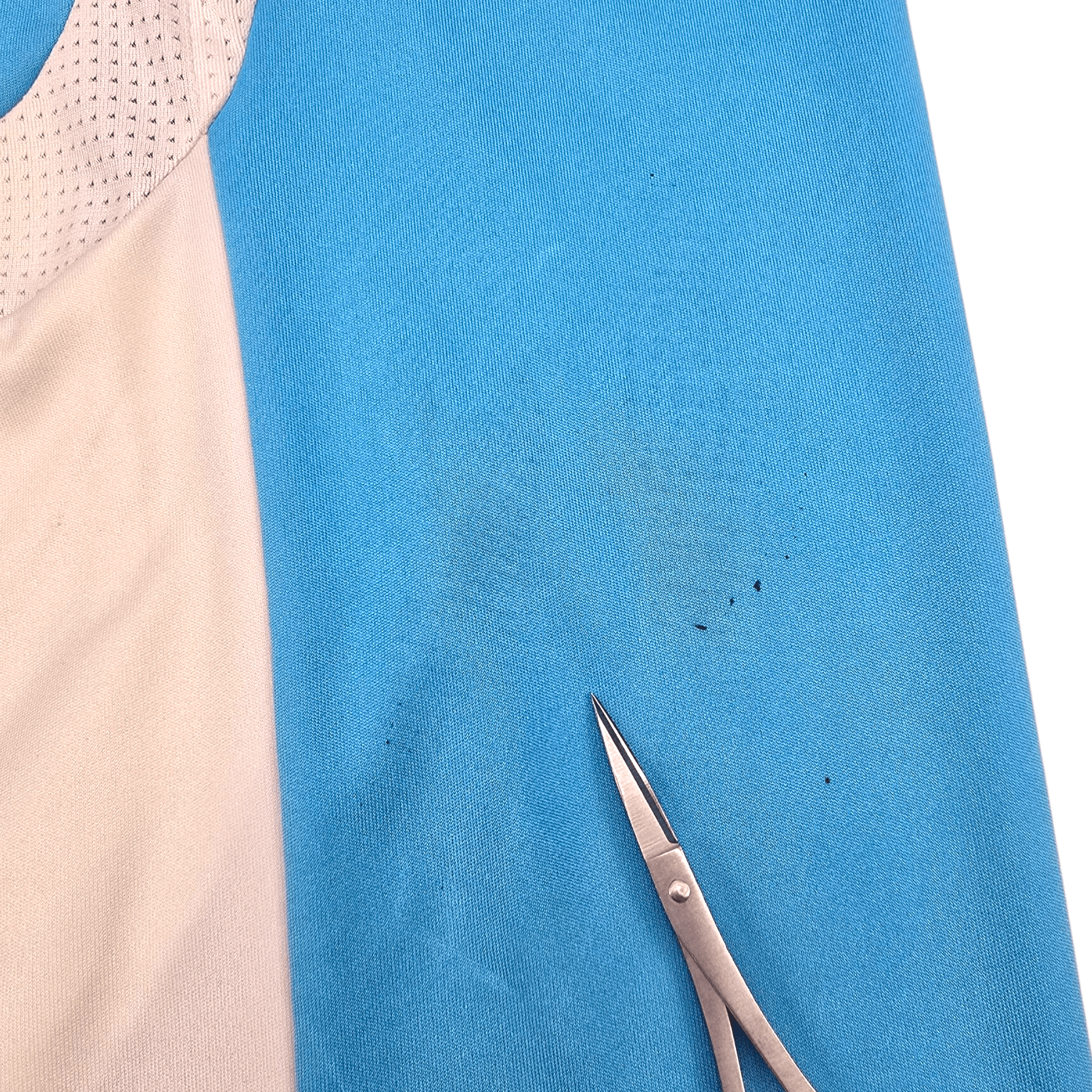 Condition: Very Good. Superb colours, material is smooth with a few bobbles & light marks, a set of small dark marks to the lower reverse flank (see photo), no pulls, tears or holes. Embroidered manufacturer logo & stitched club badge are excellent, as is vinyl chest sponsor. Vinyl player nameset on reverse is as new. Collar, sleeves and hem are in fabulous condition.