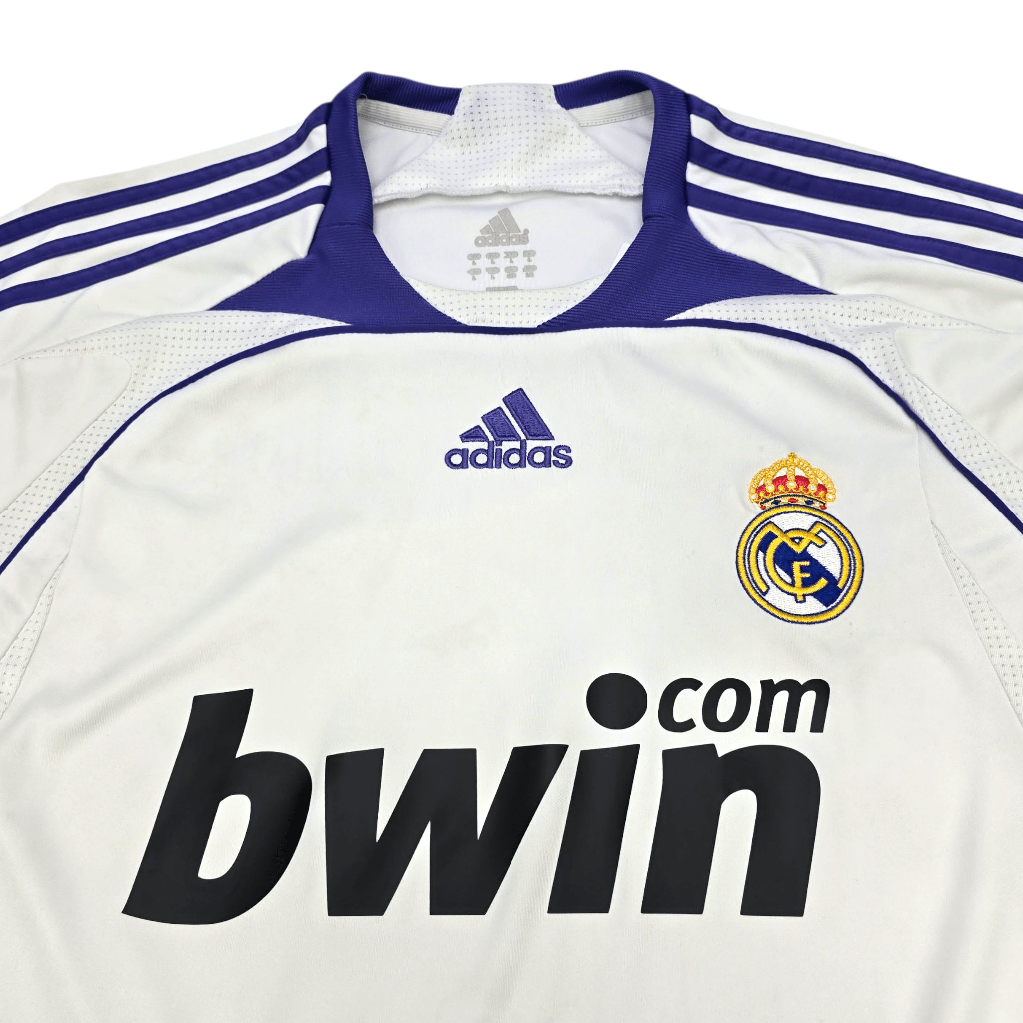 Information: Official Adidas Real Madrid home football shirt, as worn by 'Los Blancos' during the 2007/08 season. The reverse of the shirt boasts the nameset of Brazilian forward, Robinho. A fantastic vintage jersey, ideal for a collection of your own or the perfect gift for any football fan.