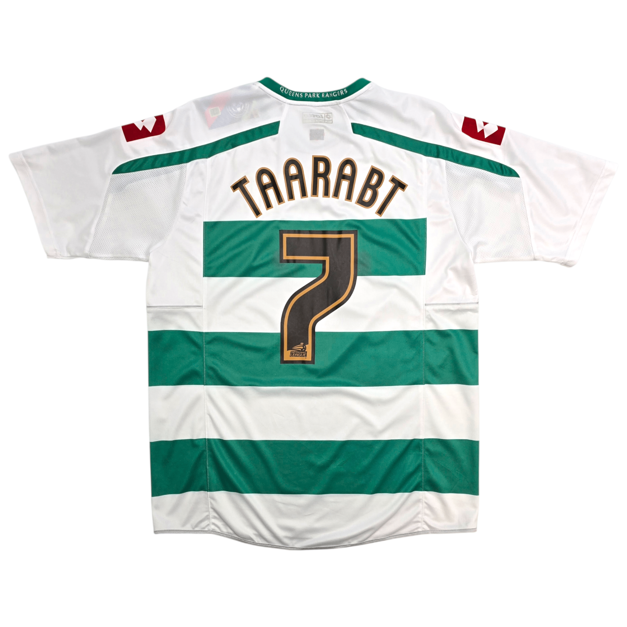 Information: Official Lotto Queens Park Rangers third football shirt, as worn by 'The Hoops' during the 2010/11 season, when the side were crowned Championship champions to secure promotion back to the Premier League under Neil Warnock. The reverse of the shirt boasts the nameset of club legend, Adel Taarabt. A fantastic jersey, ideal for a collection of your own or the perfect gift for any football fan.