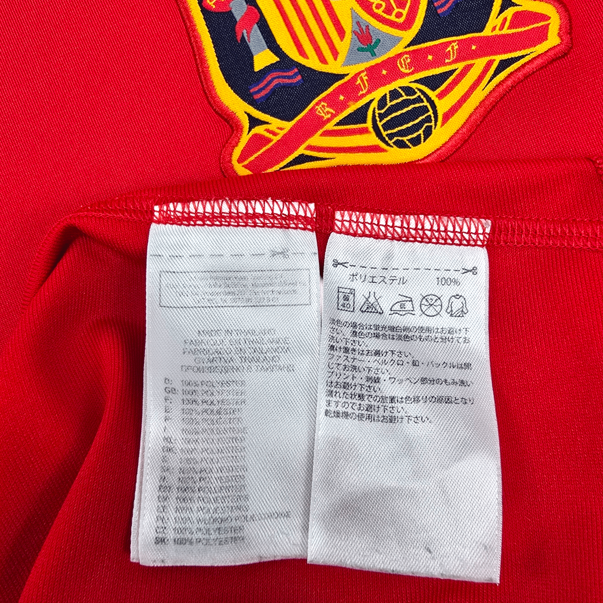 Information: Official Adidas Spain home football shirt from 2010/11, as worn by ‘La Roja’ when they competed in the 2010 FIFA World Cup Finals in South Africa. The Spanish topped their group with 6 points and went on to reach the final, where they triumphed, beating European rivals Netherlands after extra time. The reverse of the shirt boasts the nameset of generational midfield talent, Cesc Fabregas, the Arsenal, Barcelona and Chelsea ace who represented his country 110 times. Asian market issue, so has internal wash labels for the region. A fantastic jersey, ideal for a collection of your own or the perfect gift for any football fan
