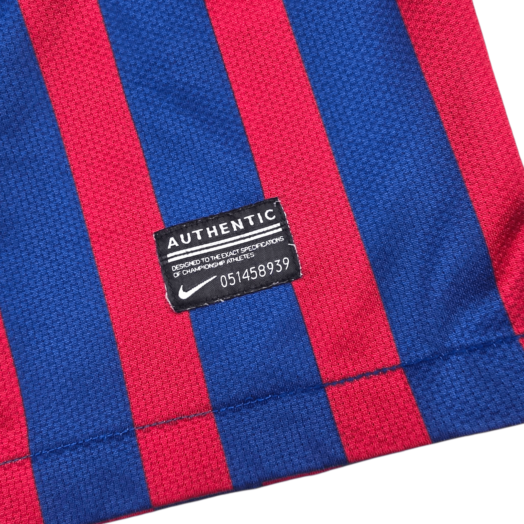 Information: Official Nike Barcelona home football shirt, as worn by 'Barça' during the 2011/12 season. The reverse of the shirt boasts the nameset of club legend, Lionel Messi. A fantastic vintage jersey, ideal for a collection of your own or the perfect gift for any football fan.