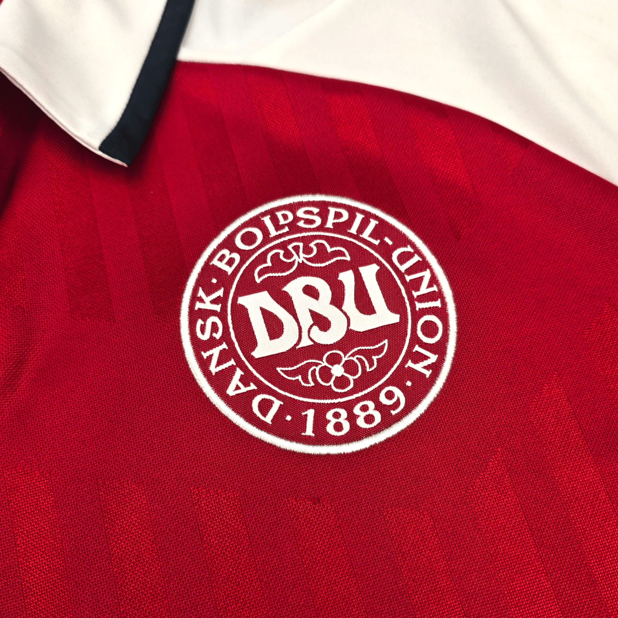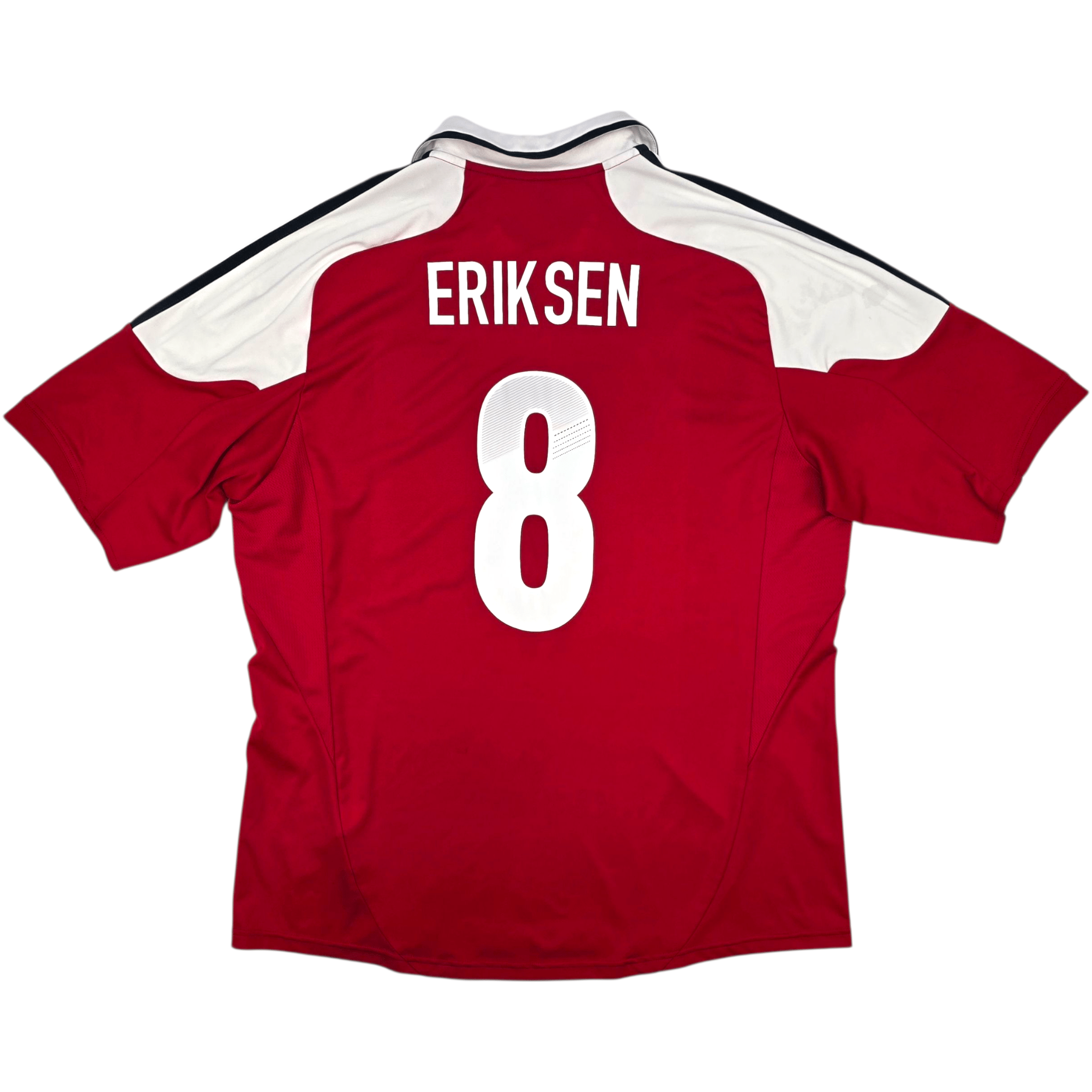 Information: Official Adidas Denmark home football shirt, as worn by 'Danish Dynamite' during the 2012/13 season, including their UEFA Euro 2012 campaign. The reverse of the shirt boasts the nameset of legend, Christian Eriksen. A fantastic vintage jersey, ideal for a collection of your own or the perfect gift for any football fan.