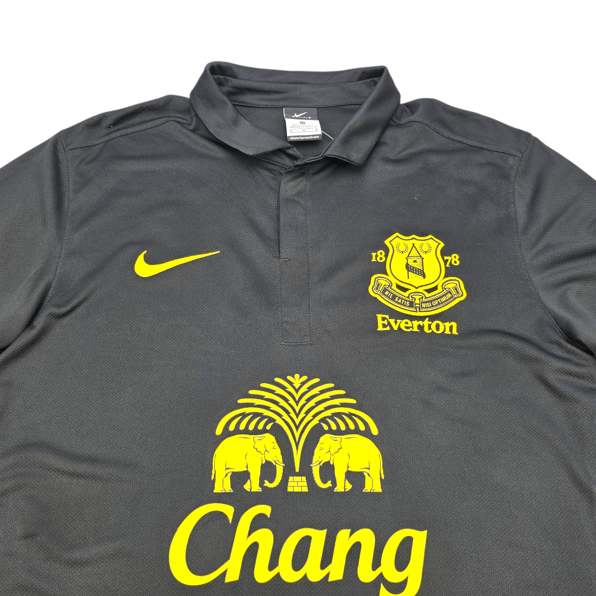 Information: Official Nike Everton away football shirt, as worn by 'The Toffees' during the 2012/13 season. The reverse of the shirt boasts the nameset of club legend, Leighton Baines. A fantastic jersey, ideal for a collection of your own or the perfect gift for any football fan.