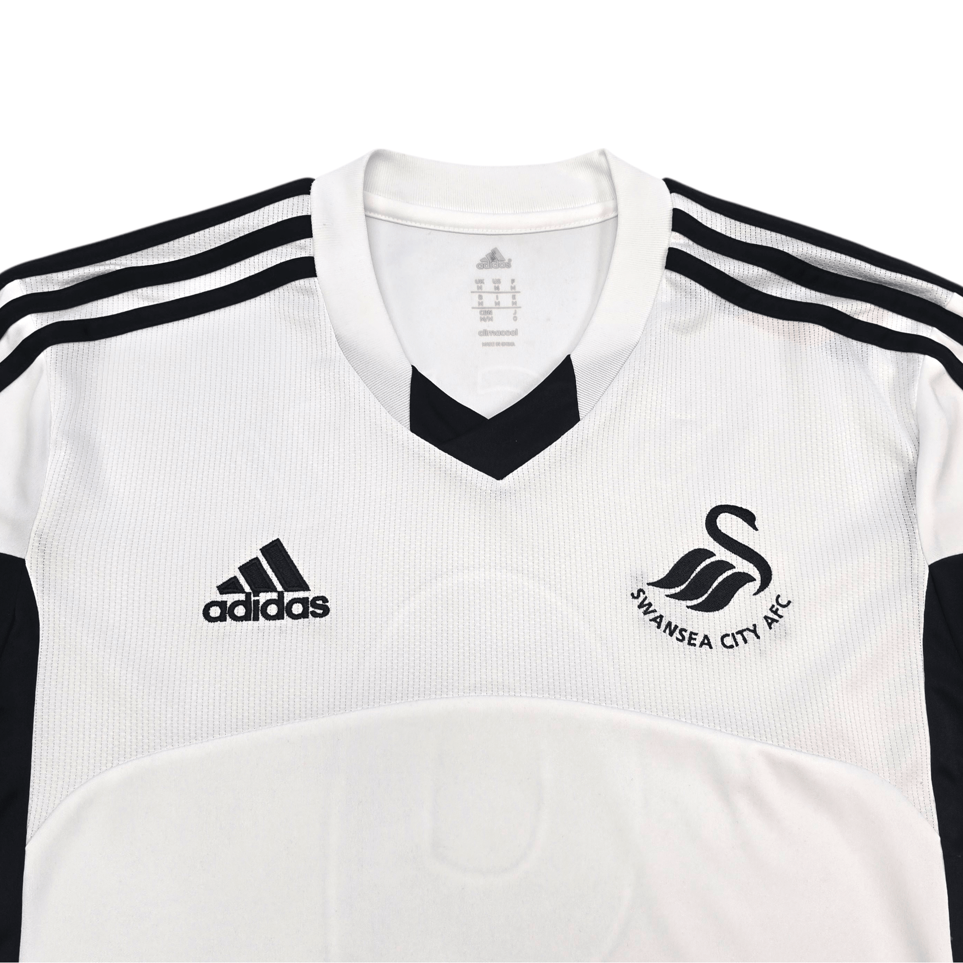 Information: Official Adidas Swansea City home football shirt, as worn by ‘The Swans’ during the 2013/14 season, when the side finished 12th in the Premier League under Garry Monk after a challenging campaign of ups and downs, including competing in the UEFA Europa League. The reverse of the shirt boasts the nameset of club legend, Michu. A fantastic vintage jersey, ideal for a collection of your own or the perfect gift for any football fan.