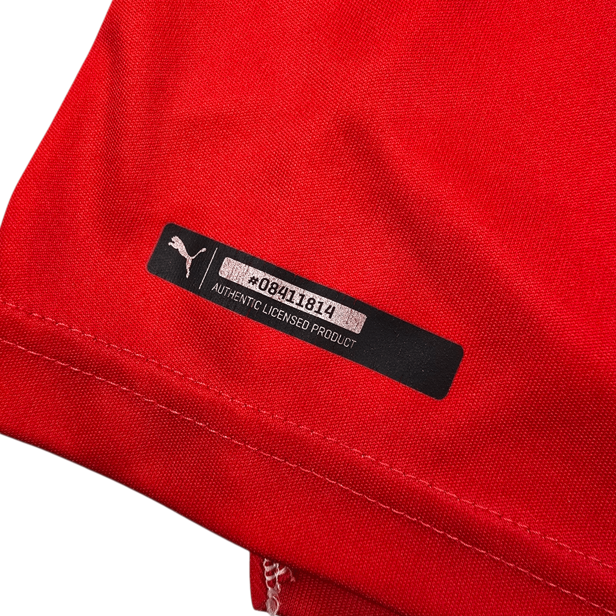 Condition: Very Good. Good colours, material is smooth with a few tiny marks & bobbles, no pulls, tears or holes. Embroidered manufacturer logo & stitched club badge are excellent, as is vinyl chest sponsor. Vinyl player nameset to reverse has a reddish tinge due to colour run (see photo). Collar, sleeves and hem are in fabulous condition.