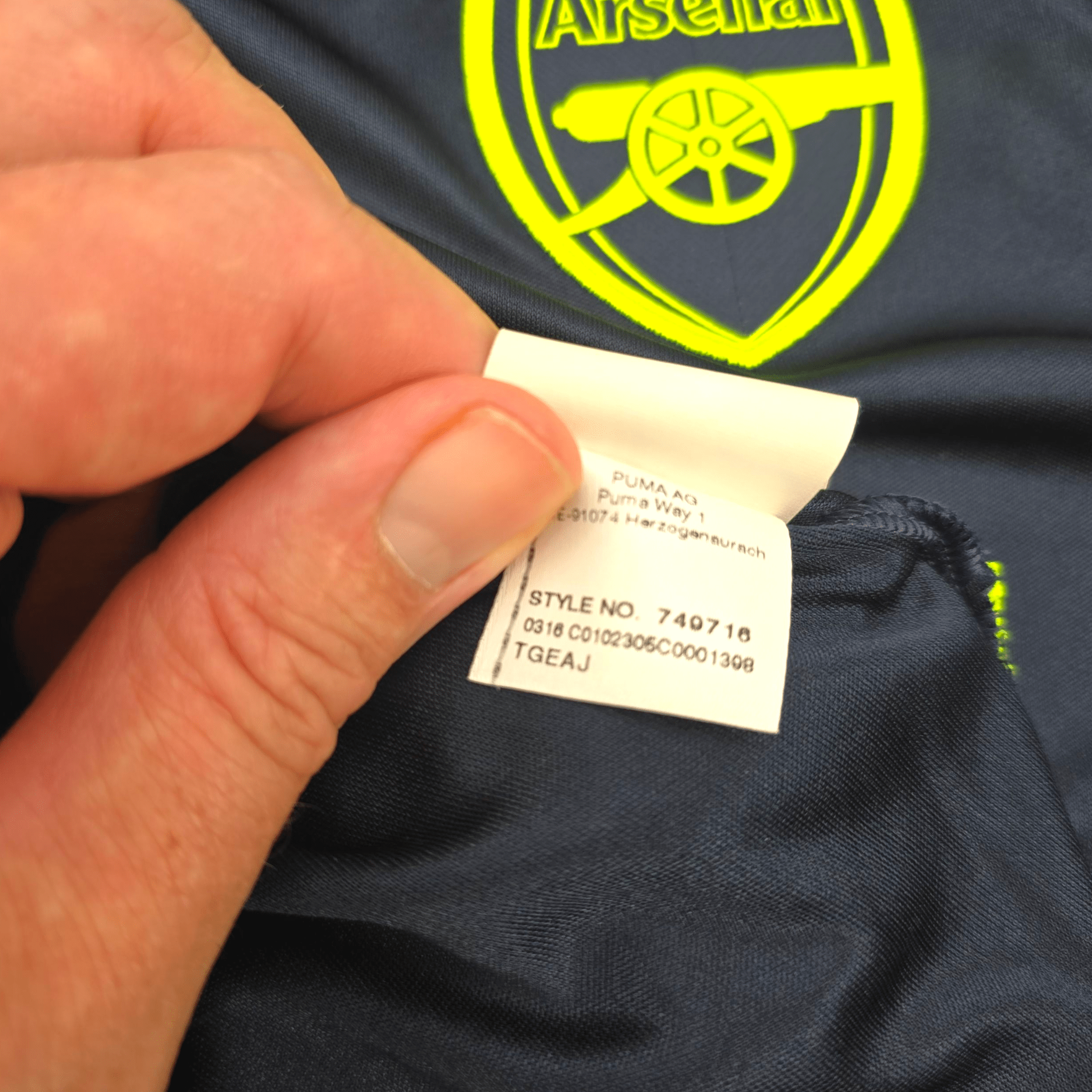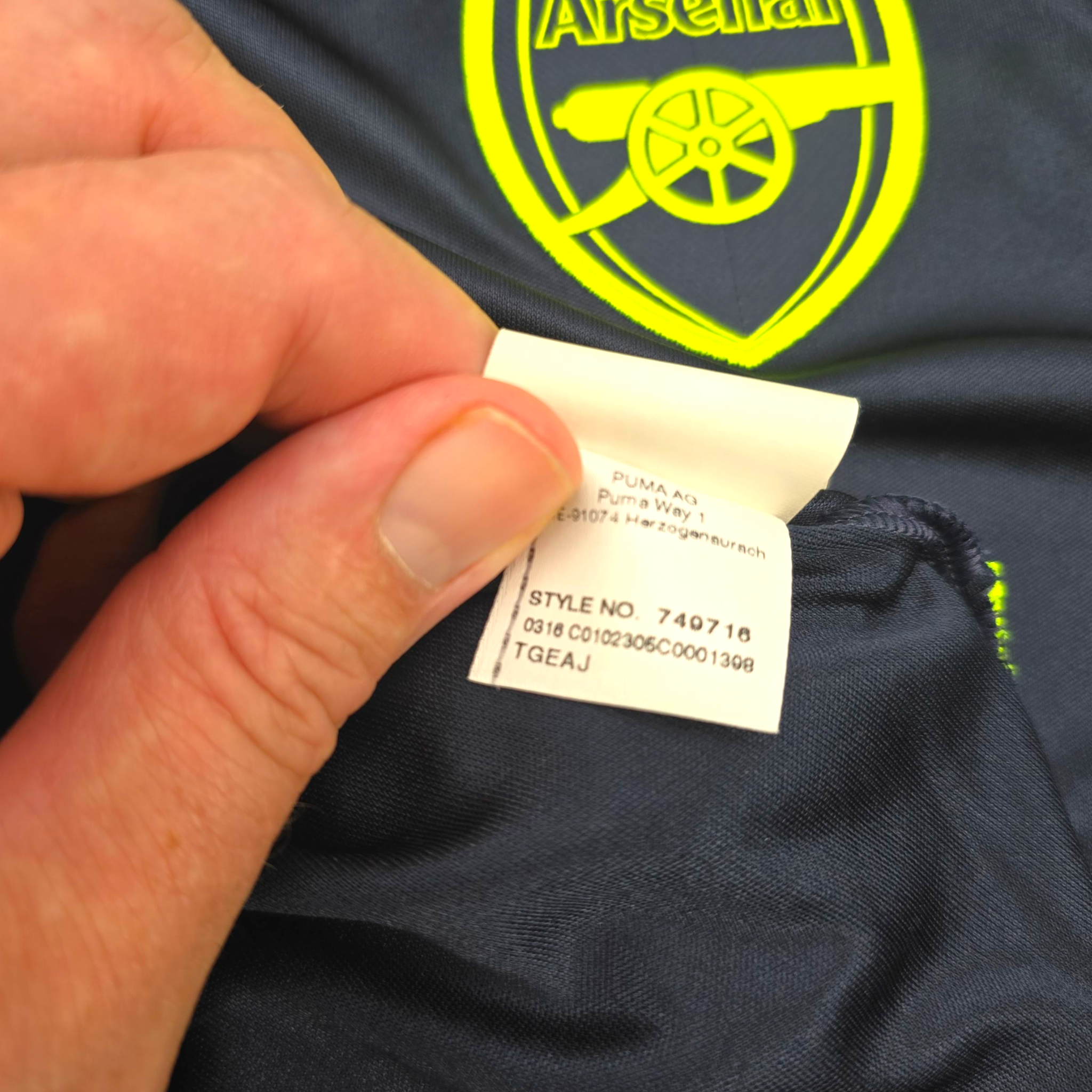 Information: Official Puma Arsenal third football shirt, as worn by 'The Gunners' during the 2016/17 season. The reverse of the shirt boasts the nameset of club legend, Theo Walcott. A fantastic jersey, ideal for a collection of your own or the perfect gift for any football fan.