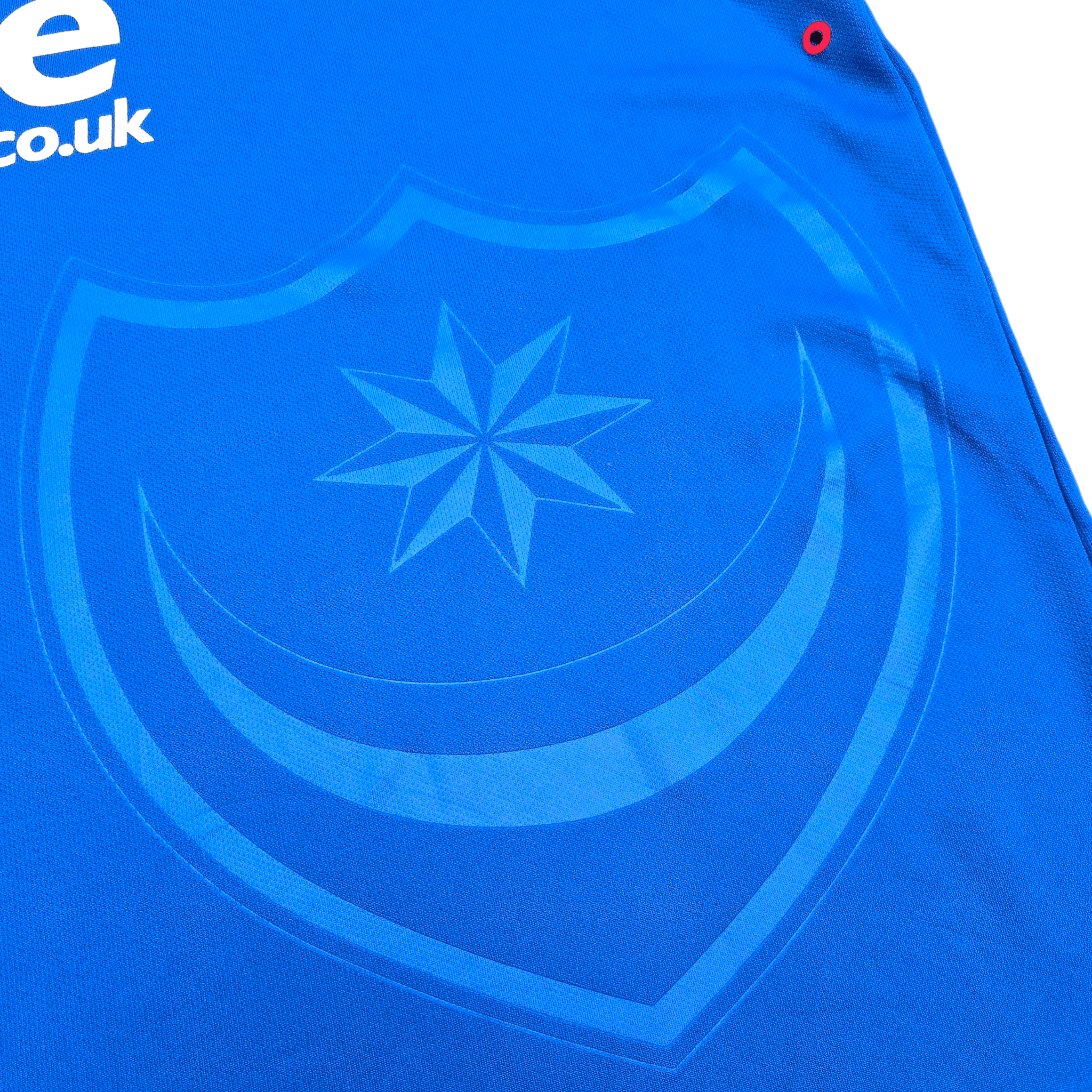 Information: Official Sondico Portsmouth home football shirt, as worn by 'Pompey' during the 2017/18 season, when the side enjoyed a solid League One campaign and secured a comfortable mid-table finish following promotion the year before. A fantastic jersey, ideal for a collection of your own or the perfect gift for any football fan.
