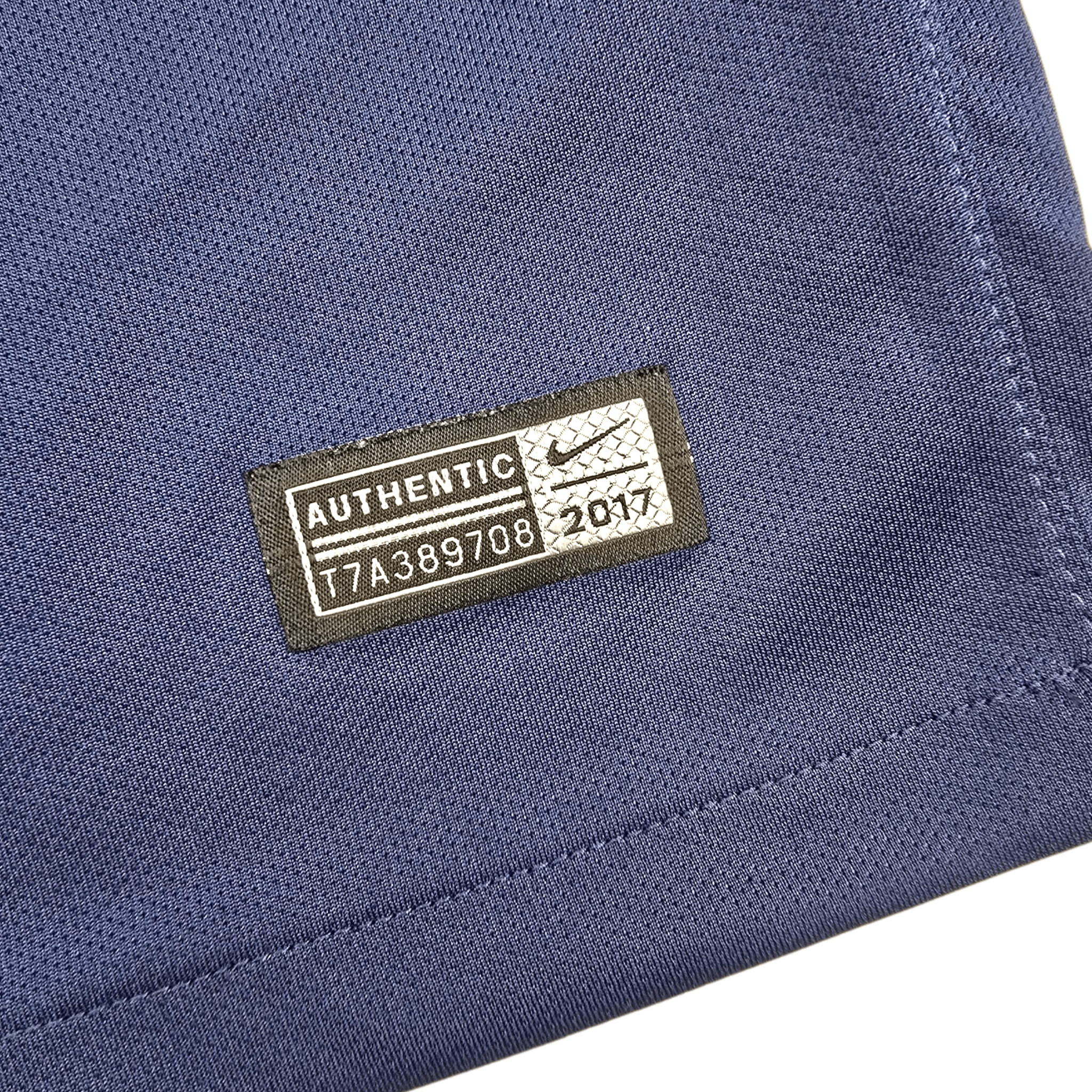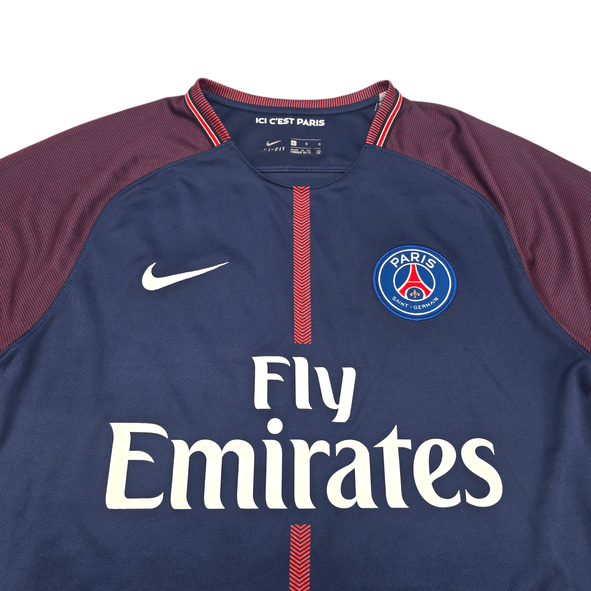 Information: Official Nike Paris Saint-Germain home football shirt, as worn by 'Les Parisiens' during the 2017/18 season, when the side won a domestic treble - Ligue 1, Coupe de France, and Coupe de la Ligue. The reverse of the shirt boasts the nameset of club legend, Neymar Jr. A fantastic jersey, ideal for a collection of your own or the perfect gift for any football fan.