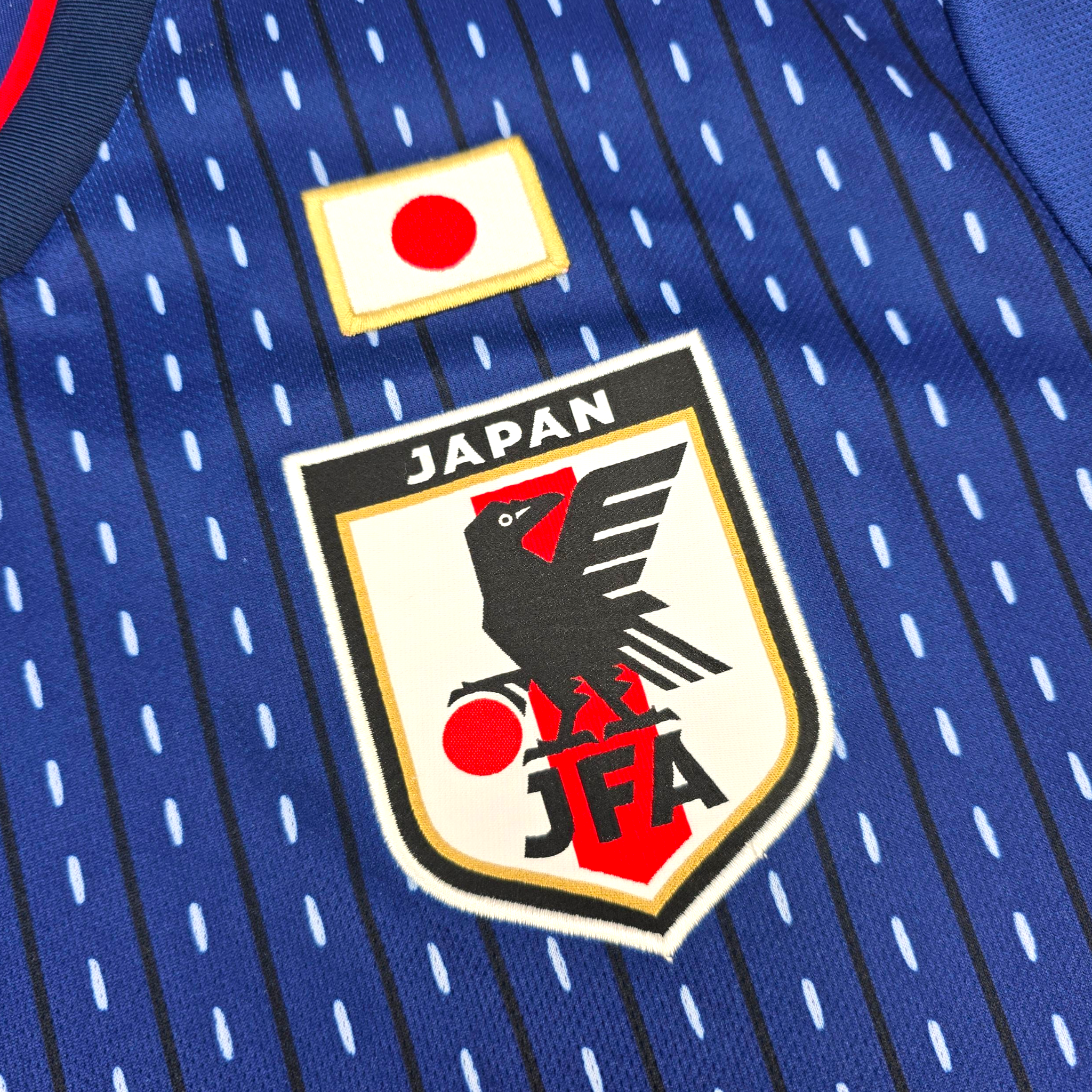 Information: Official Adidas Japan home football shirt, as worn by 'Samurai Blue' during the 2018/19 season, when the side competed at the 2018 World Cup in Russia, reaching the Round of 16 after an impressive group stage campaign. A fantastic jersey, ideal for a collection of your own or the perfect gift for any football fan.