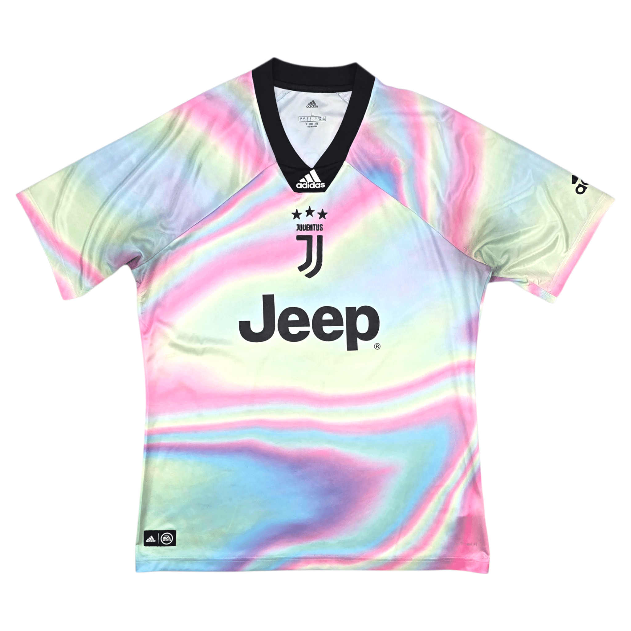 Information: Official Adidas Juventus special football shirt, as worn by 'I Bianconeri' during the 2018/19 season, released in collaboration with EA Sports for FIFA 19. The reverse of the shirt boasts the nameset of club legend, Cristiano Ronaldo. A fantastic jersey, ideal for a collection of your own or the perfect gift for any football fan.