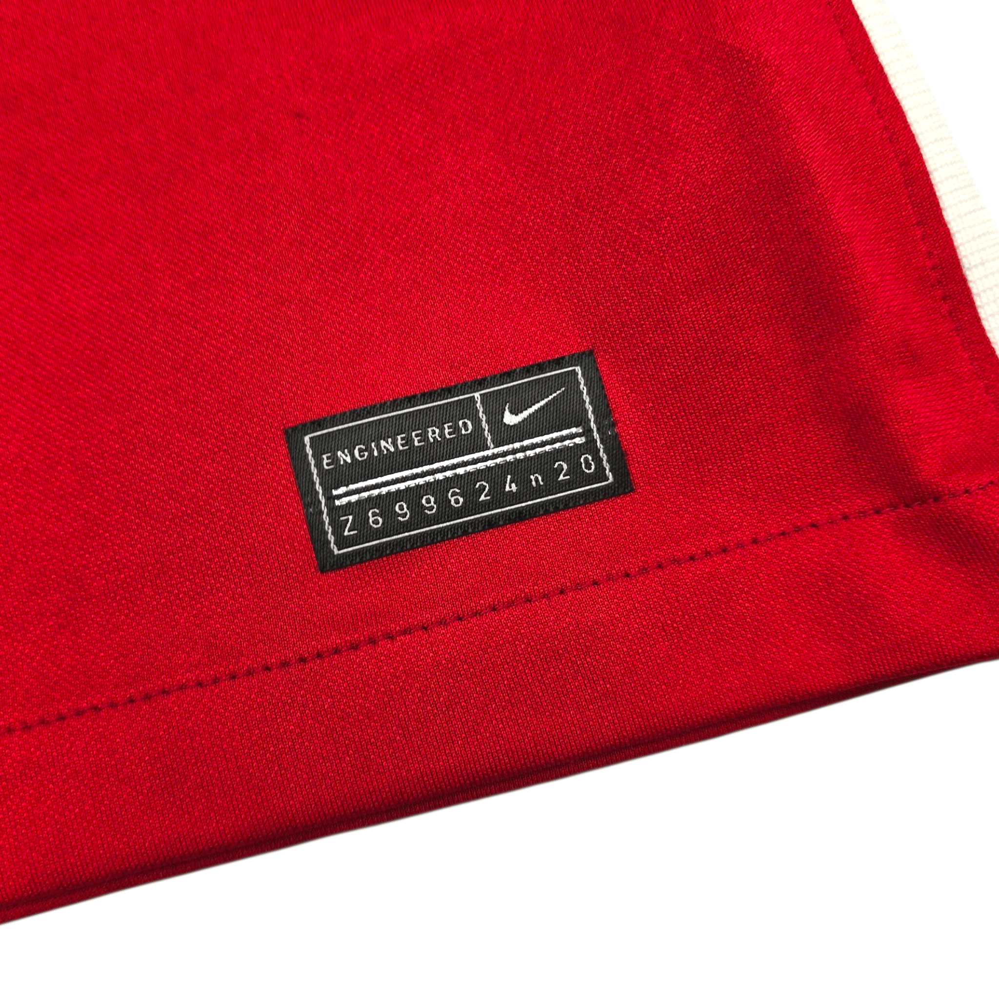 Information: Official Nike Liverpool home football shirt, as worn by 'The Reds' during the 2020/21 season, when the side battled through a defensive injury crisis yet still managed to secure a third-place finish in the Premier League and qualification for the Champions League. The reverse of the shirt boasts the nameset of club legend, Virgil van Dijk. A fantastic jersey, ideal for a collection of your own or the perfect gift for any football fan.